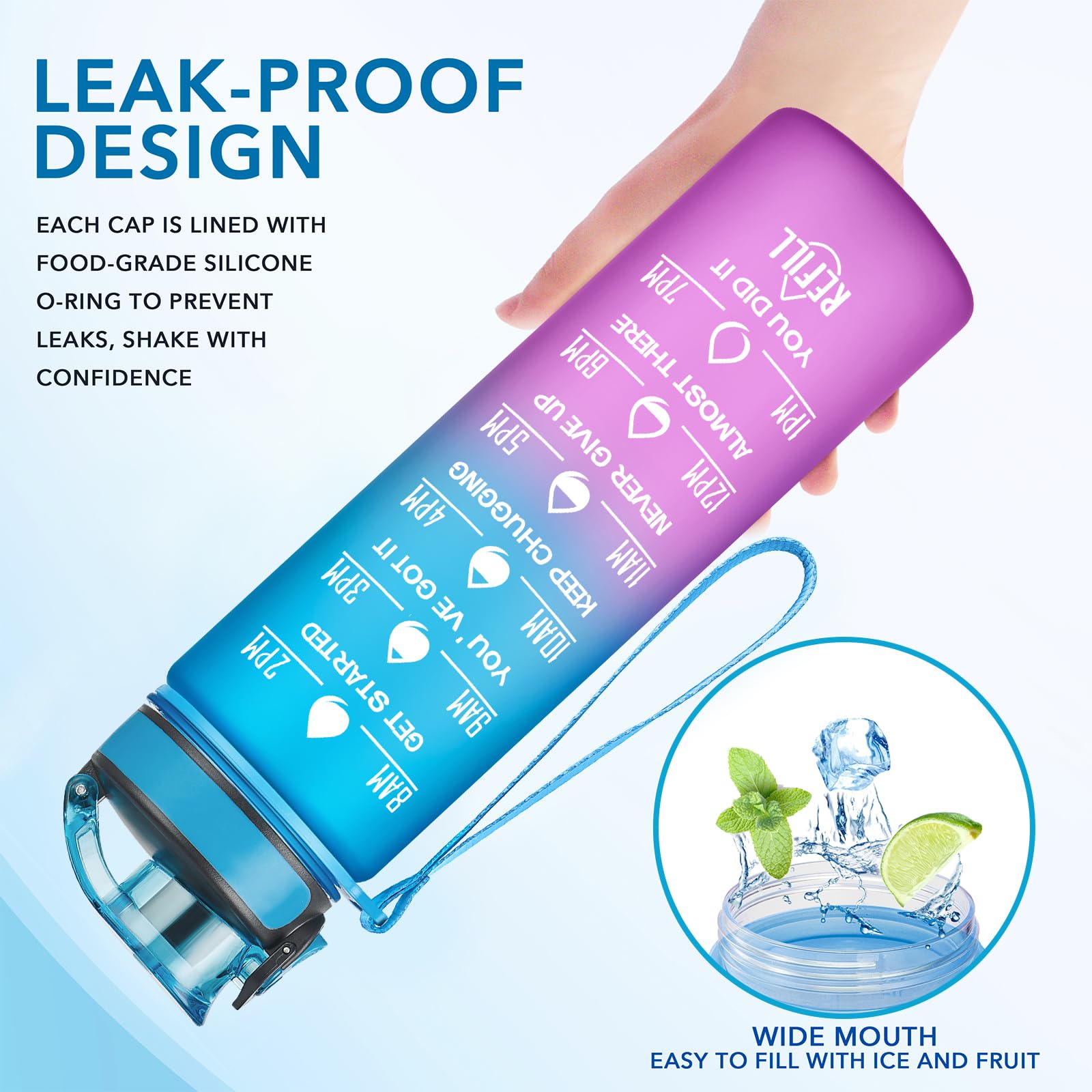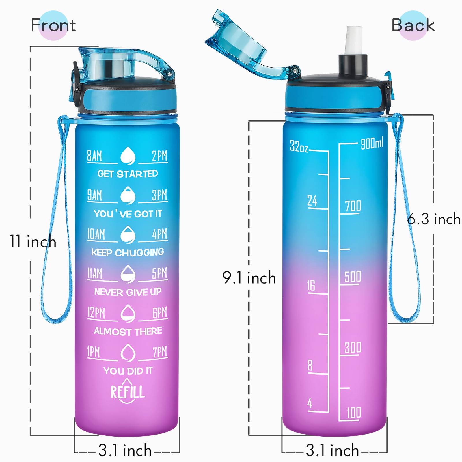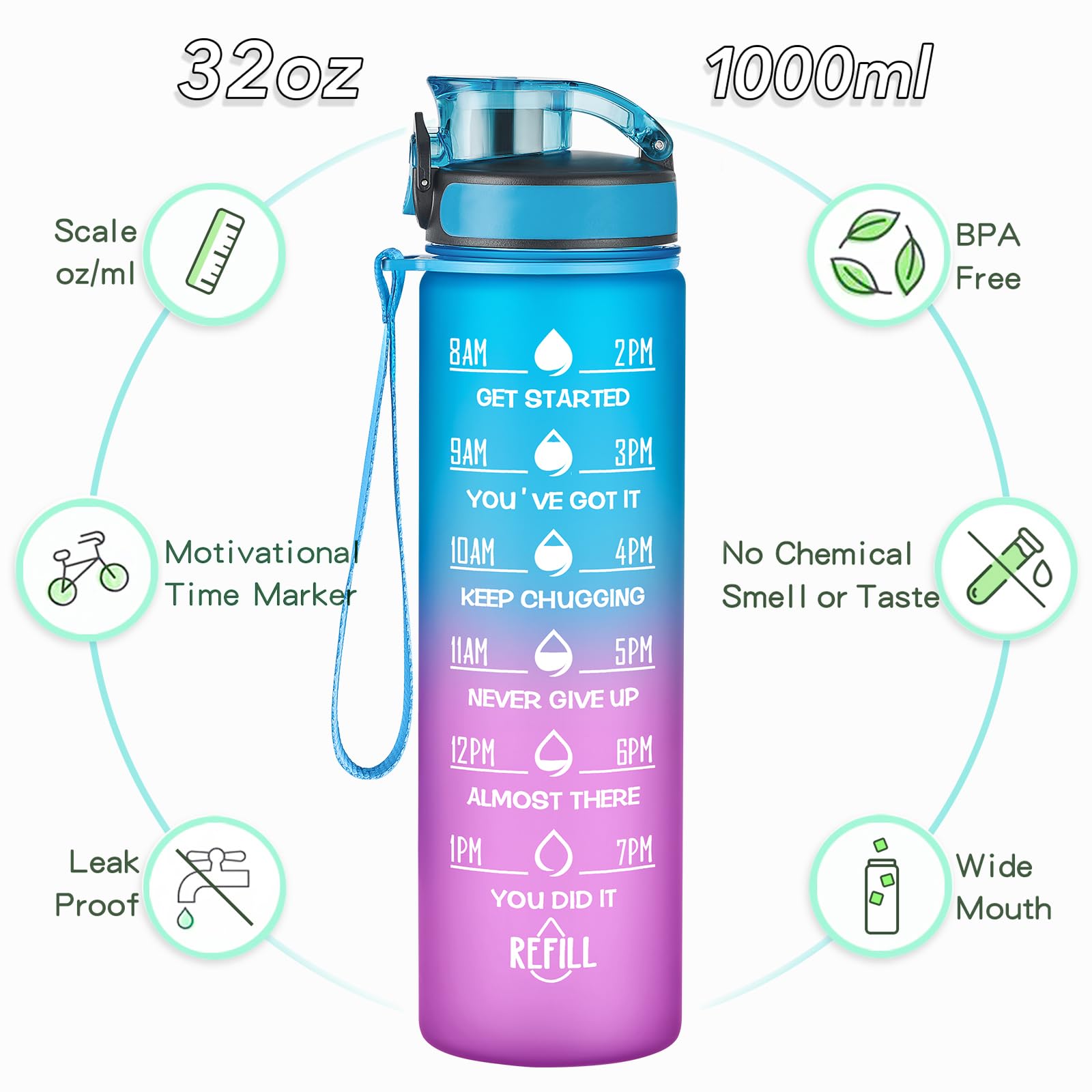 【Stay Motivated and Hydrated】32 oz water bottle with unique quote and time marker are inspirational, convenient for tracking your daily water intake and reminding you of being hydrated. Drinking bottles is suitable for any activities.