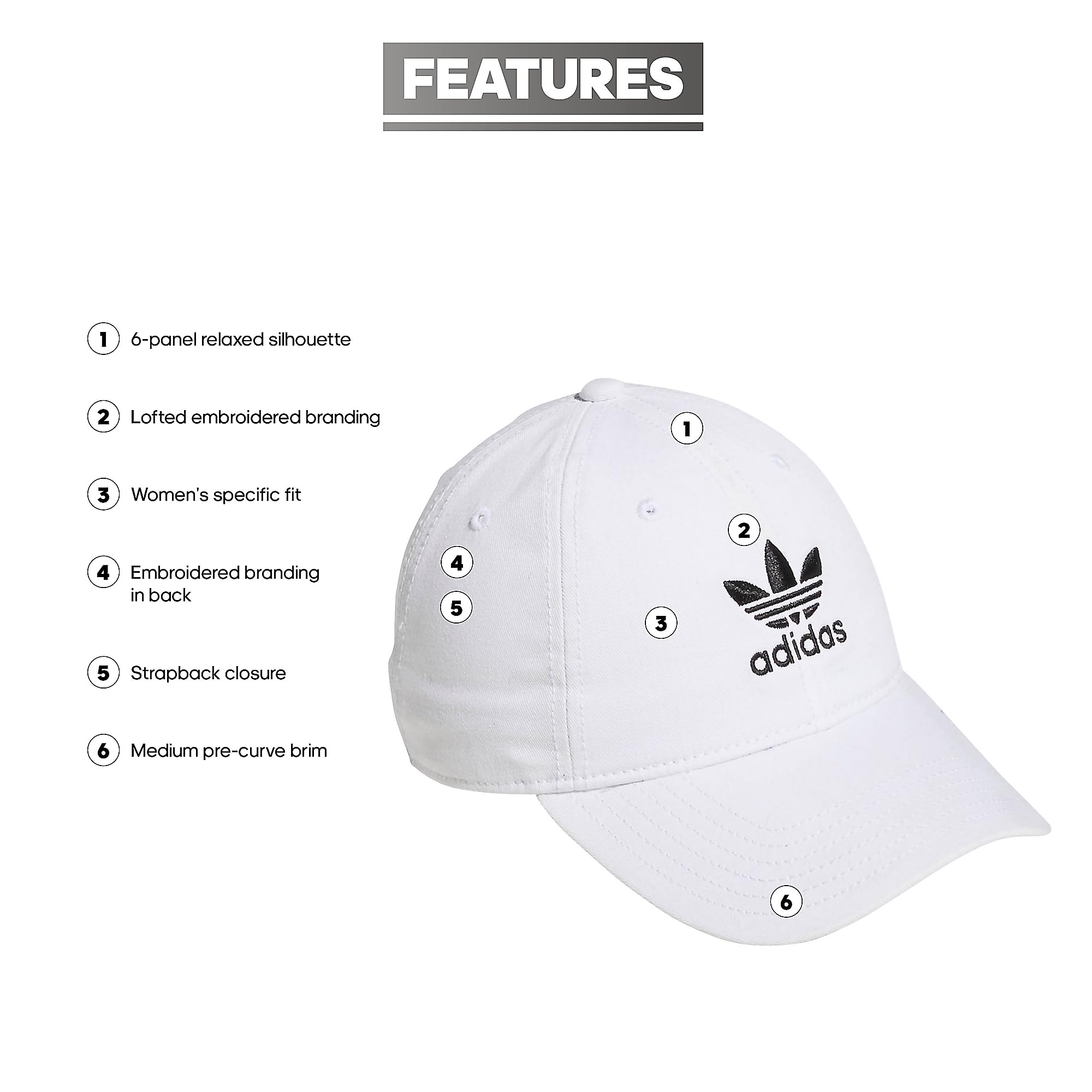 Description Cotton twill and a curved brim give this cap an easy, casual vibe. The six-panel hat is sized for women and built with an adjustable slider in back for a just-right fit. It flashes Trefoil embroidery in front.