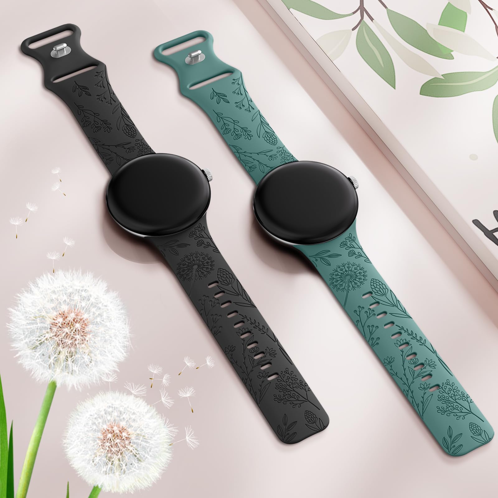 Exquisite Craftsmanship: These sports Google pixel watch 2 bands are made of skin-friendly silicone material, which is soft and comfortable. Utilizing advanced floral printing laser engraving is performed on professional equipment, soft silicone with various flower, and dandelion patterns, high definition. It does not wear off or fade over time, giving you a lightweight, flexible, youthful, and energetic feeling