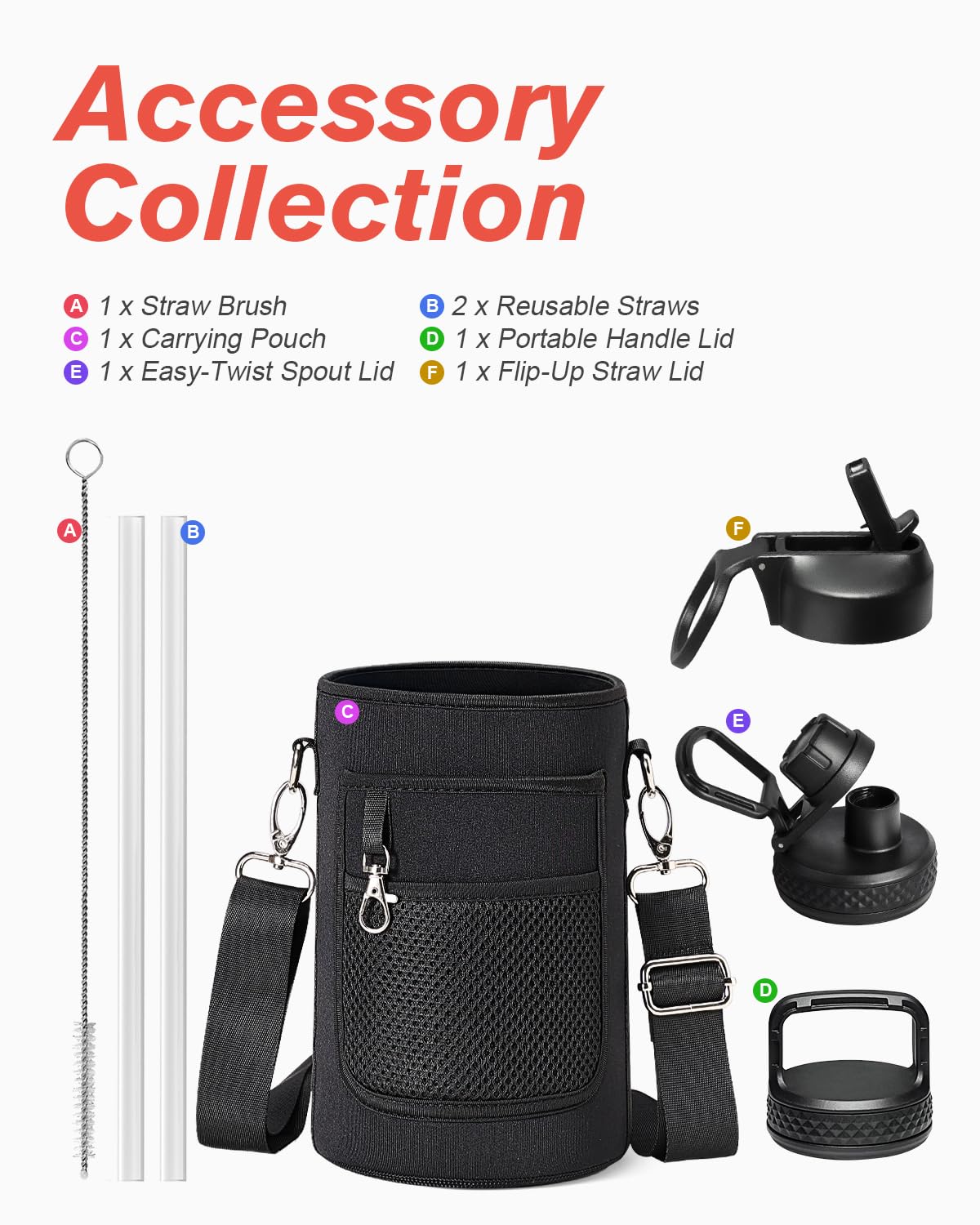 Flexible Drinking On-the-Go: This water jug comes with 3 different lids. The screw-on lid with flip-up handle is for easy ice refilling with superior portability; spout lid makes it convenient to drink hot liquid and straw lid for sipping cold