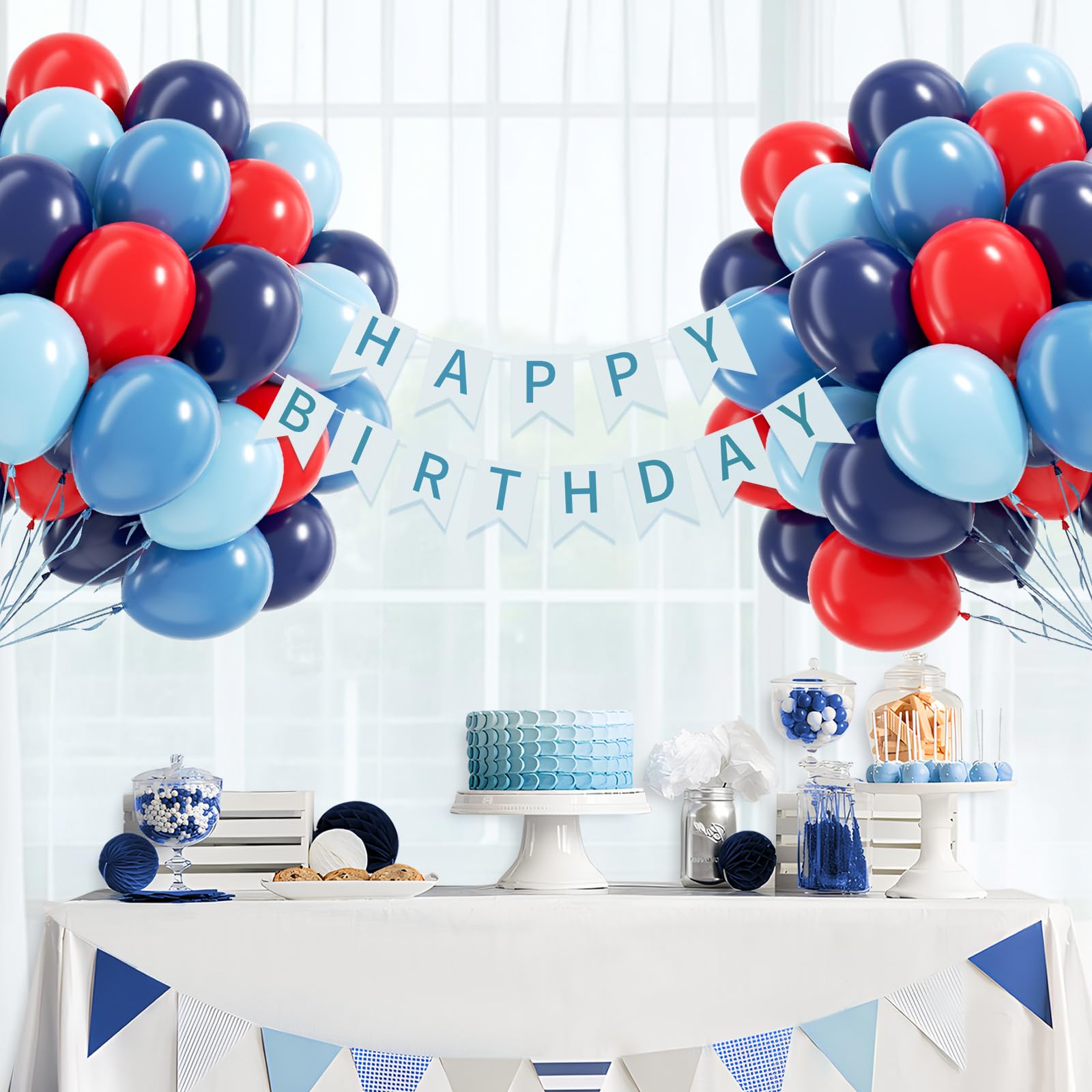 What You Will Get: The package includes 12inch navy blue balloonsx20, 12inch slate blue balloonsx10, 12inch dusty blue balloonsx10, 12inch red balloonsx20, glue dotsx20, blue ribbonx1