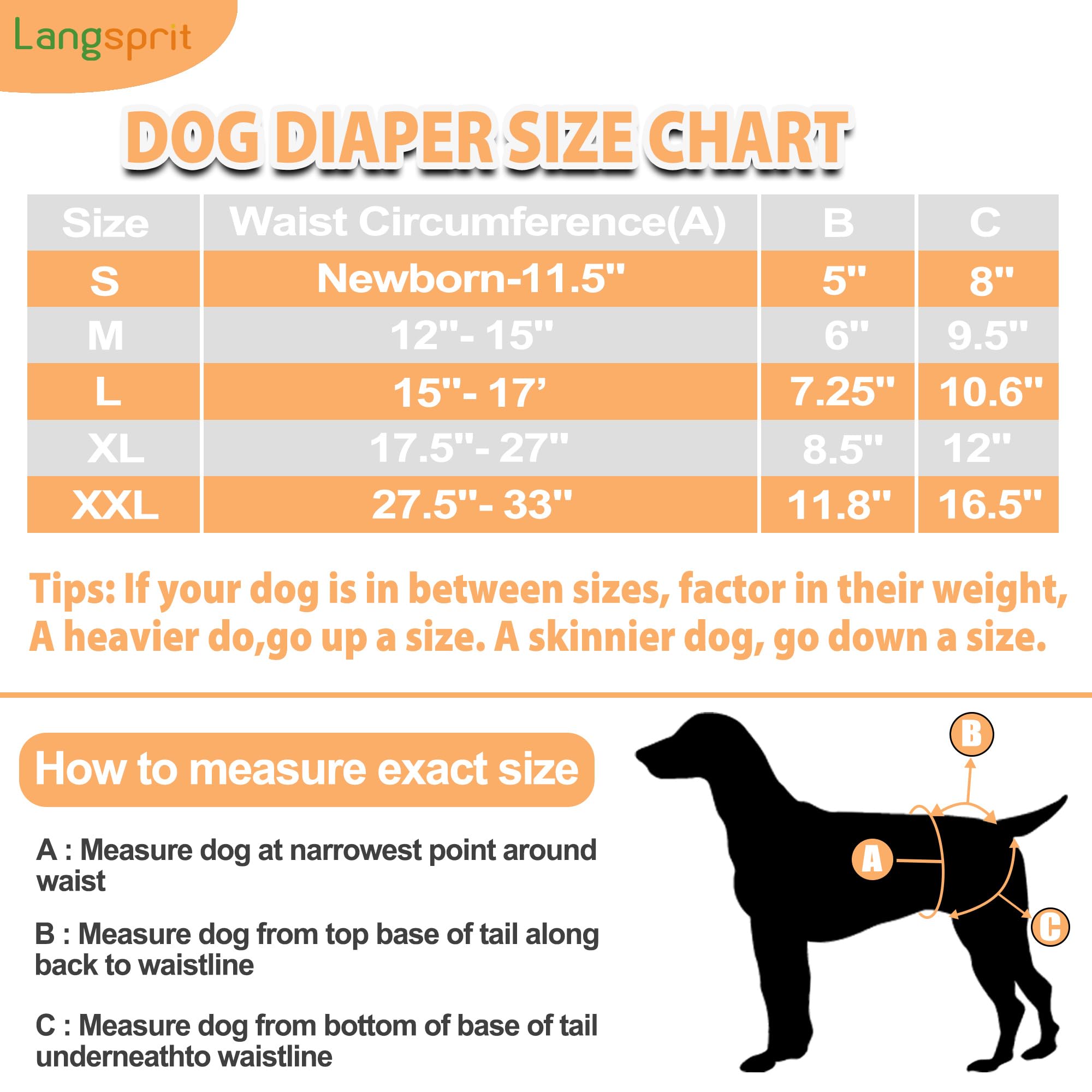 Machine Washable - Langsprit diaper for dogs design is durably built with precise stitching so it can stand up to everyday use and frequent washing. Machine wash below 30℃, tumble dry on low heat or air dry.