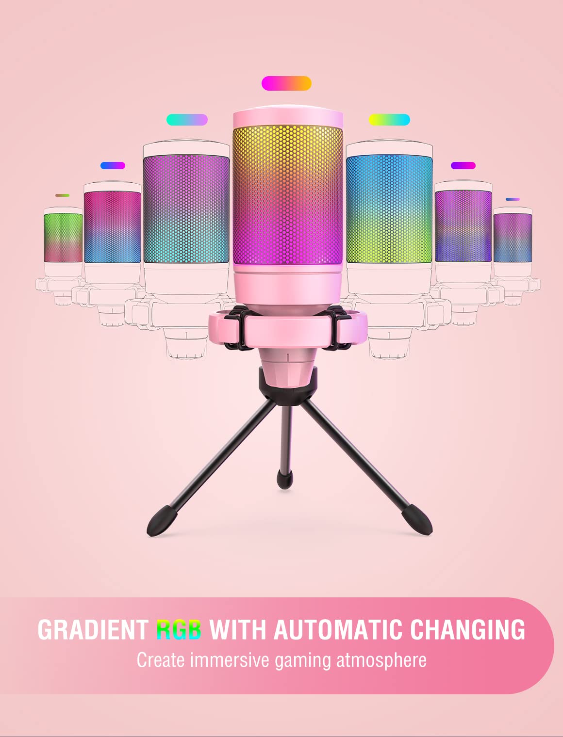 Fancy Gaming Atmosphere-The lovely and sweet pink gaming mic is the icing on the cake for your pink game space. The gentle RGB lights changing itself looks more lively under the pink atmosphere. The pink mic for gaming adds infinite gaming fun, for you who are pink fans.
