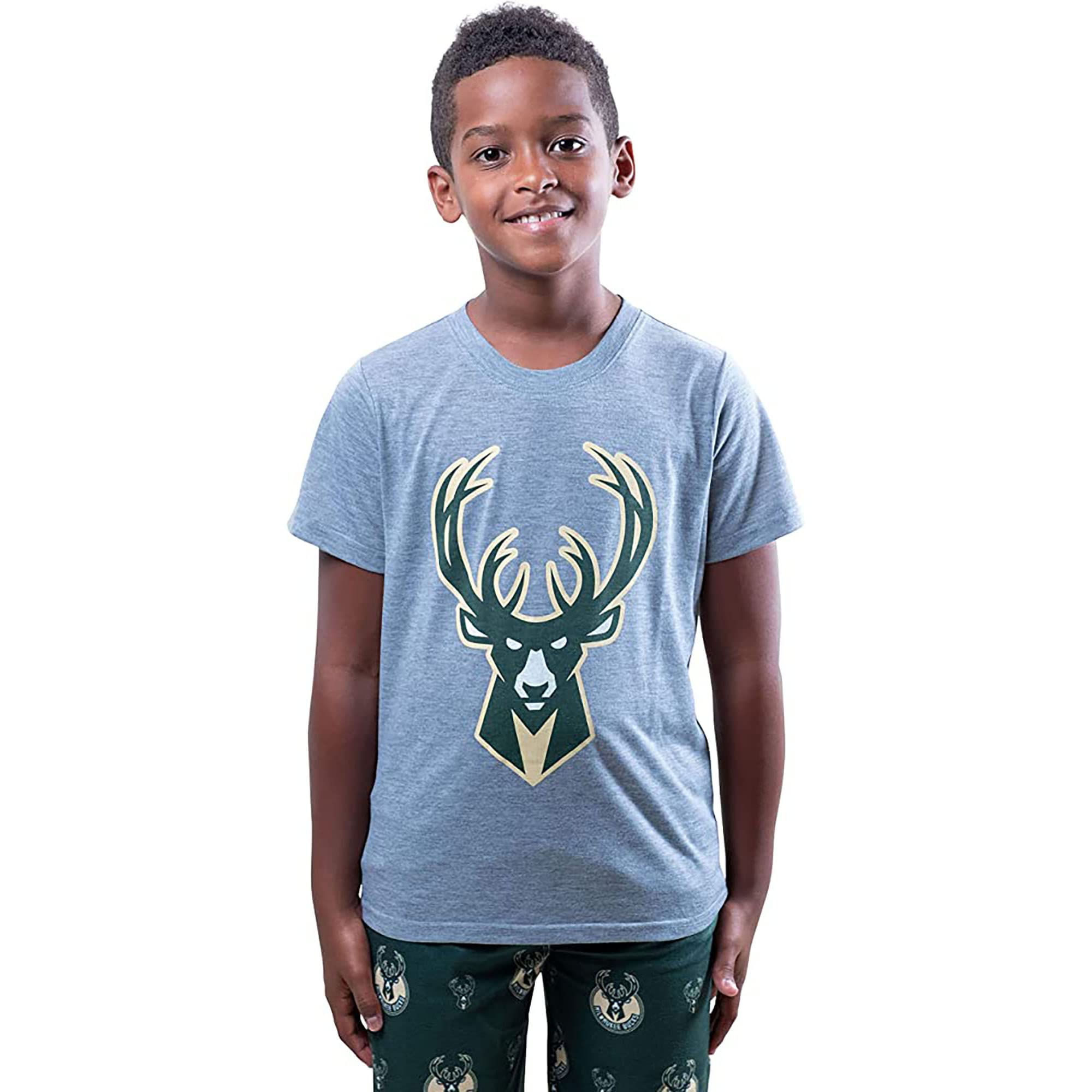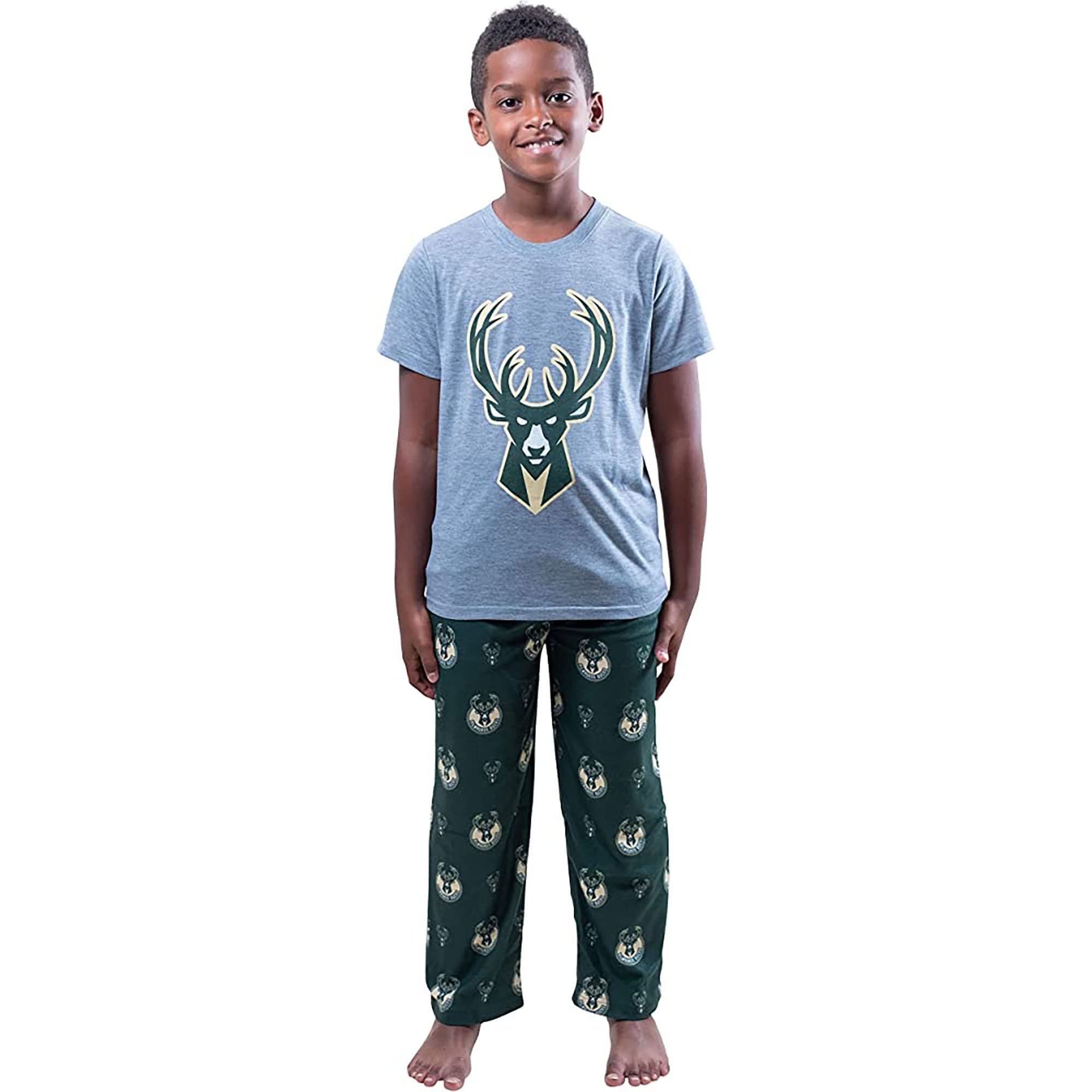 TEAM PRIDE: kids can show their NBA team pride from top to bottom with this set. The bottoms have an all-over print with the team's primary and secondary logos. The top has one large screen print of the primary logo across the front.
