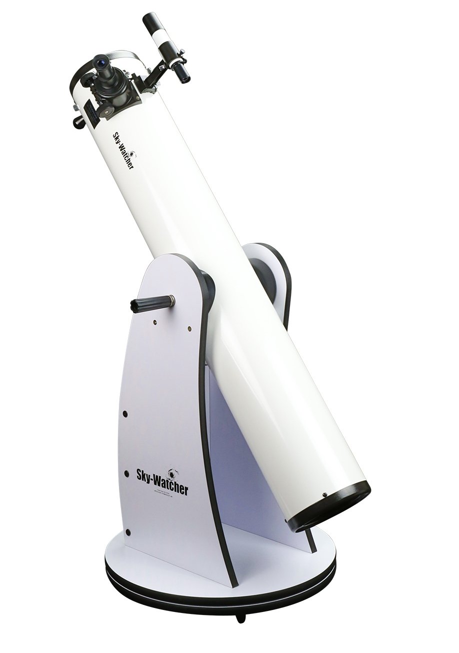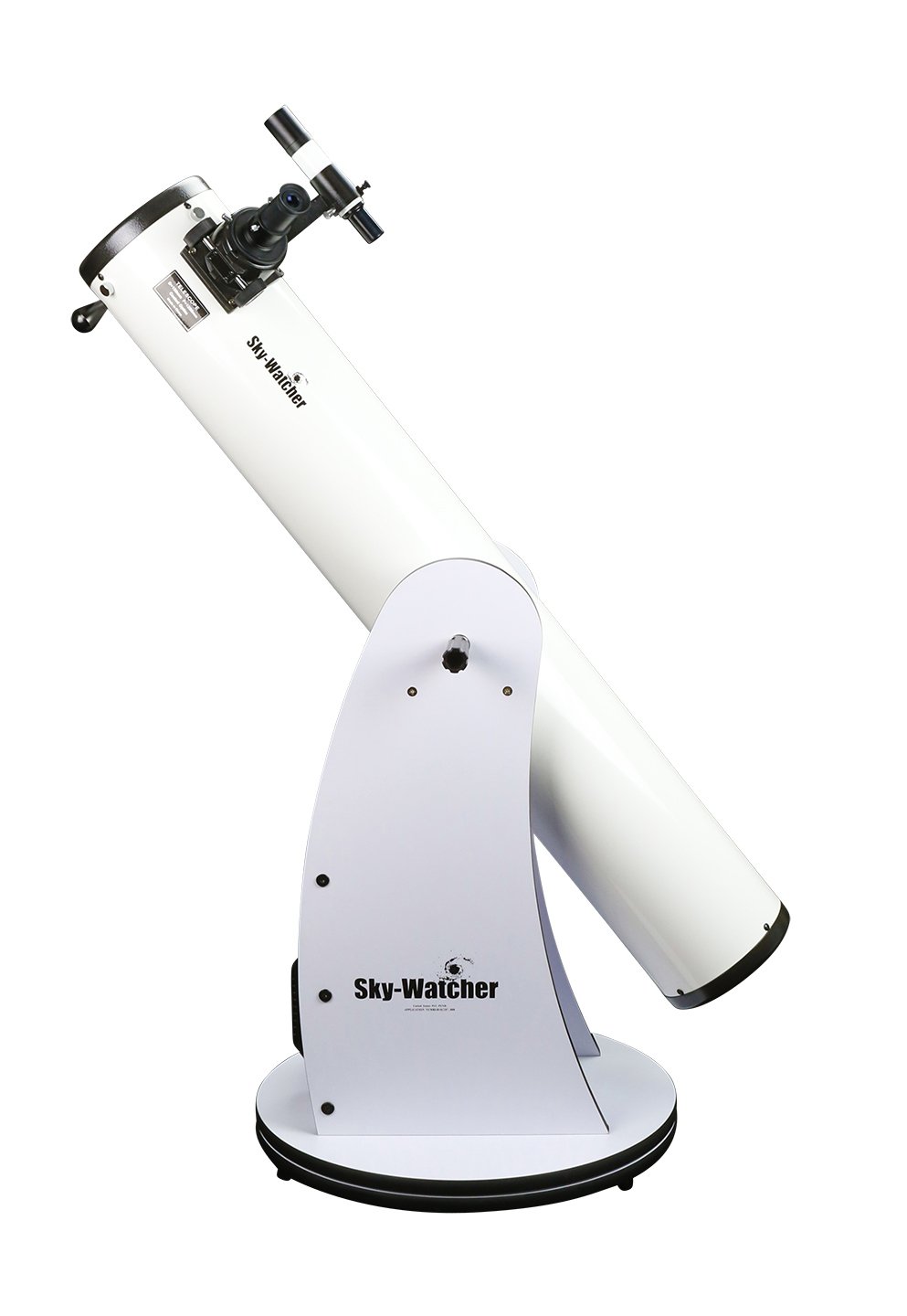 High-Quality Light Buckets with Old School Charm Featuring large apertures and easy functionality, Sky-Watcher’s Traditional Dobsonian telescope makes the perfect beginner scope. Developed in the 1970s, the Dobsonian-style telescope is an inexpensive solution for bright, detailed visual observing using a simple design. The name ‘Dobsonian’ comes from the telescope’s inventor, John Dobson, a Vedantan monk and sidewalk astronomer who dedicated his life to astronomy outreach. Dobson was notorious for constructing large aperture reflecting telescopes capable of deep sky viewing, using low cost materials. These were often made with found materials, heavy cardboard tubes, recycled porthole glass and plywood mounts. Dobson encouraged other astronomers to assemble their own telescopes and taught workshops on telescope making. Sky-Watcher carries on the legacy Dobson left behind with our Traditional Dobsonian telescope. Often referred to as ‘light buckets’, Dobsonians provide users with the highest possible aperture for their money when compared to telescopes of a similar size, such as Schmidt-Cassegrains or refractors. Dobsonians use a simple, yet effective design, optimized for visual observation of faint objects, such as nebulae, star clusters and galaxies. At Sky-Watcher, we stay true to the traditional John Dobson design, using just two mirrors, a metal tube and a simple rocker box. Although we love computerized telescopes, using a star chart to find objects by hand can be far more fulfilling and will improve your knowledge of the night sky. Unplug your electronic devices, step outside and become immersed in the wonders of the universe. Not your Father’s Dobsonian Don’t let this simple design fool you! Dobsonian-style telescopes utilize their large aperture to give users bright, vivid detail. Both primary and secondary mirrors deliver 94% reflectivity, using borosilicate mirrors coated with quartz, titanium and silicon dioxide. With a finely-crafted parabolic primary mirror and coatings this bright, you’ll be viewing just as John Dobson intended. Sky-Watcher Innovation Unlike other models on the market, Sky-Watcher Dobsonians feature a patented Tension Control Handle which allow for easy tension adjustment, enabling the telescope to move freely around the sky. The Tension Control Handle also provides stability when using large eyepieces. Steel ball bearings provide smooth movement even when the handle is tightened. The simple rocker box mount with azimuth Teflon™ bearings is easy and straightforward enough for any beginner. The use of Teflon™ ensures smooth movement, yet creates enough friction to prevent any unintentional movement of the telescope. Accessories and Other Goodies While most telescopes limit the astronomer to 1.25” eyepieces, Sky-Watcher provides users with a beefy 2-inch Rack-and-Pinion style focuser. Using the supplied 1.25 inch adapter you can take advantage of virtually any eyepiece on the market. Also included is a 6x30 finderscope and two eyepeieces (10mm & 25mm), perfect for the beginning astronomer! Highest Practical Power 306x