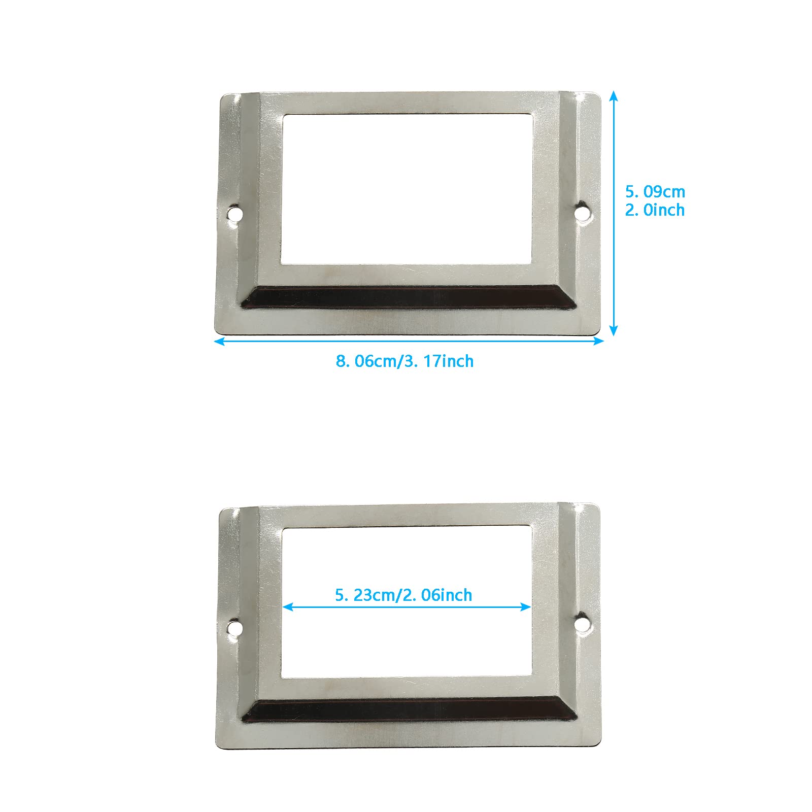 About Us: Piutouyar has been engaged in hardware and related products for many years. Customer 100% satisfaction is our first aim, we are committed to providing customers with better services and more high-quality and low-cost products. Piutouyar 24Pcs Tag Label Holder Antique Label Holder 80mm x 50mm Metal Name Card Frame for Library Drawer Tags Office Cabinet Card Tag with Screws (Silver) Specification: Product Name: Tag label holder Color: Silver Material: Iron Fit Label Size: 52mm x 31mm/2.05inch x 1.22inch(LxW) Overall Size: 80.5mm x 50.8mm/3.17inch x 2inch(LxW) Mount Hole Diameter: 2.8mm/0.11inch Screw Size: 8.3mm/0.33inch Package Included: 24pcs x tag Label Holder, 48pcs screws Notes: 1.) All dimensions are measured manually and may be 1 - 2mm deviated. 2.) There may be some color aberration due to lighting problems. Please understand. 100% Satisfaction Guarantee: At Piutouyar, we strive to provide customers with higher quality products and better services. We hope that our customers are 100% happy and satisfied. Please believe in our strength. If you don't like our product or have any questions, please feel free to contact us, we will try our best to help you solve any problems. Or you can return it according to Amazon's guidelines for a refund or replacement.