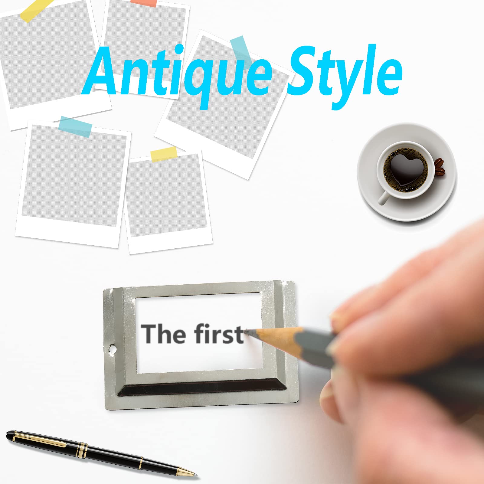 WHAT WILL YOU GET - You will get 24 pieces antique label holder. Overall size is 80.5mm x 50.8mm/3.17inch x 2inch(LxW), inner frame size is 52mm x 31mm/2.05inch x 1.22inch(LxW), mounting hole diameter is 2.8mm/0.11inch. We equip each name card frame with two screws, the height of the screws is 8.3mm/0.33inch.