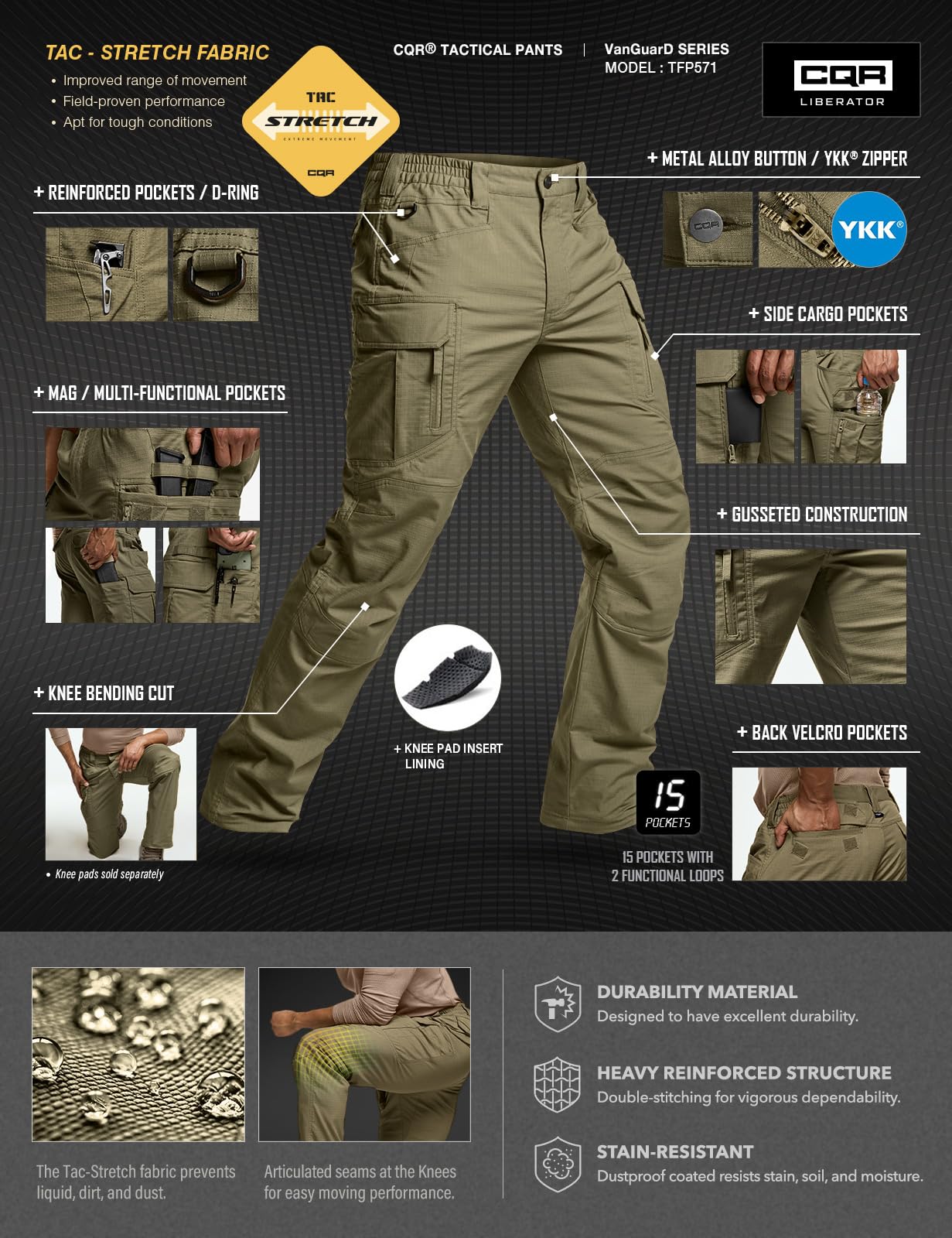 [Tac-Stretch Fabric] Improved range of movement and apt for tough conditions.