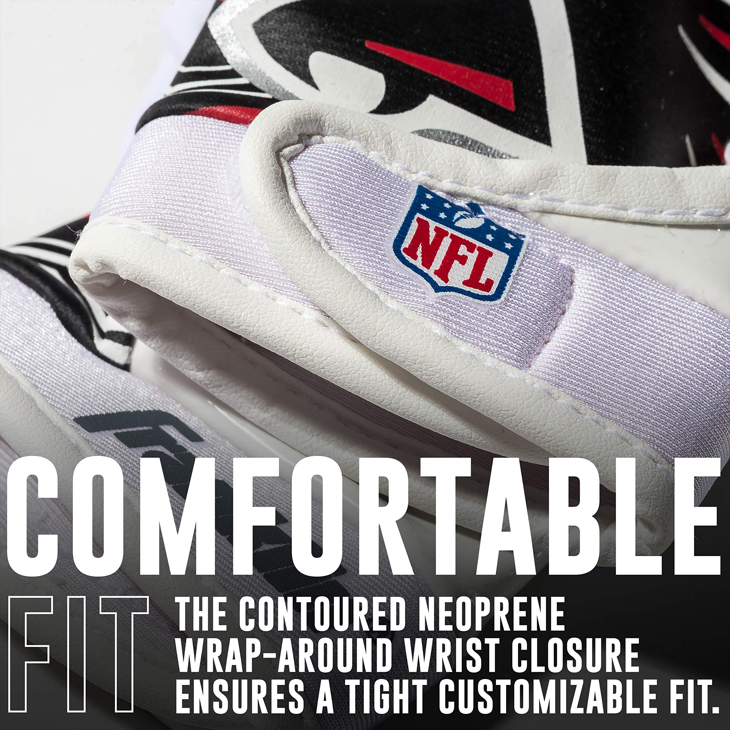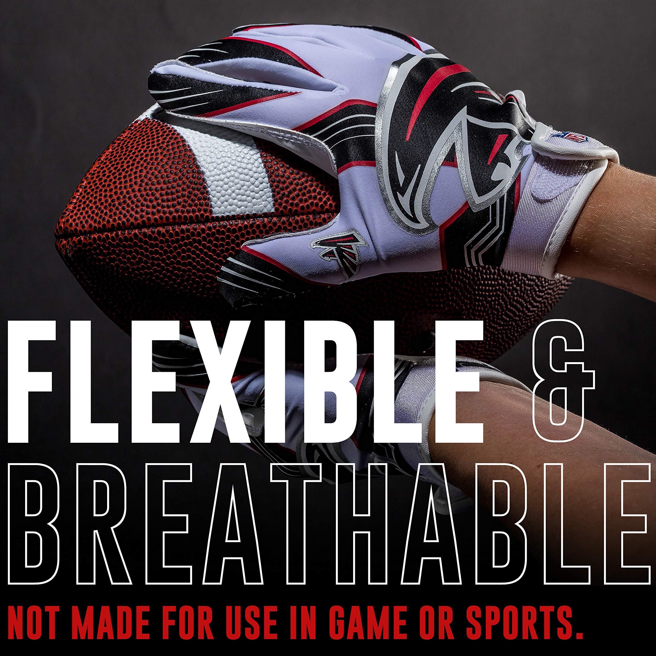 ATLANTA FALCONS RECEIVER GLOVES: These official NFL youth receiver gloves are designed with authentic team logos and colors so kids can look and play like their favorite pros!