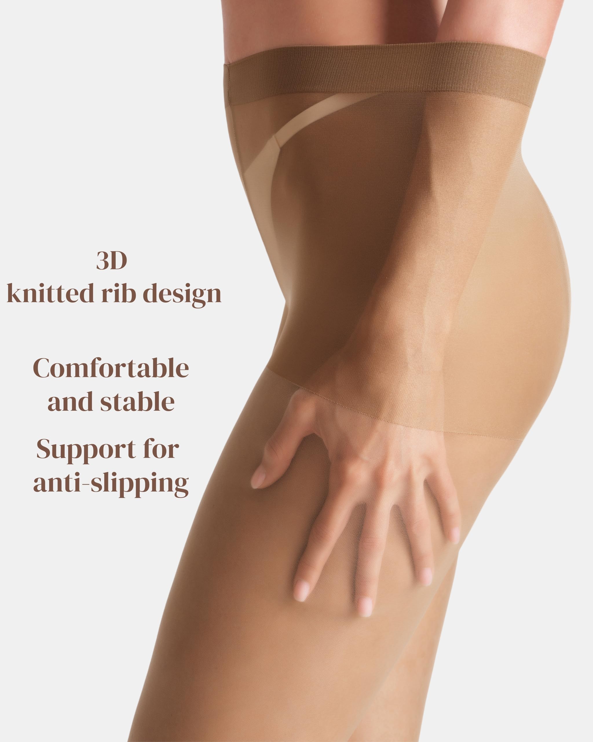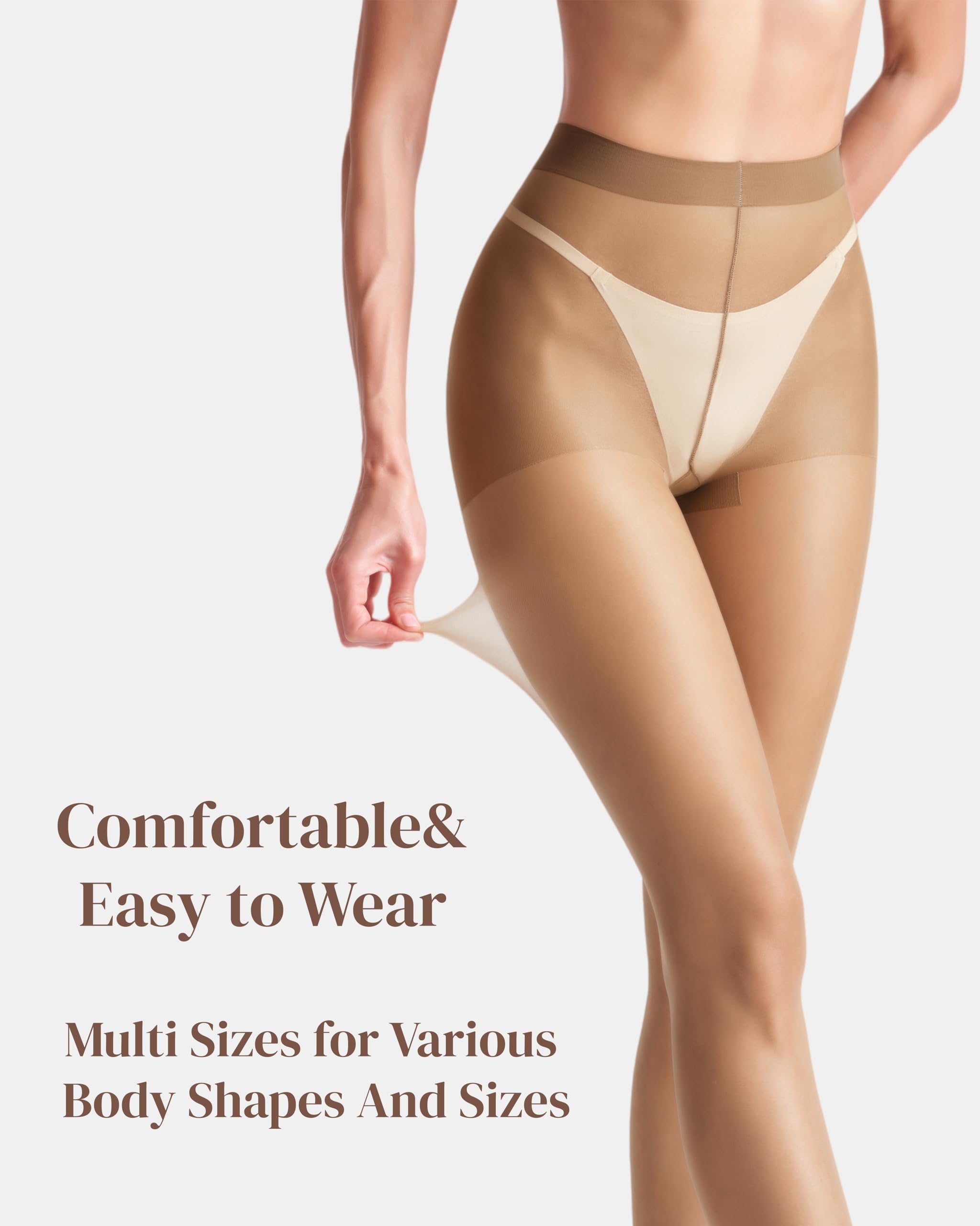CONTROL TOP: 20D high-density knitting applies just the right amount of pressure, gently tucking in excess belly fat, lifting the lines of the buttocks, and creating a natural and beautiful S-shaped curve. Maintain an elegant posture in daily wear or when paired with skirts.