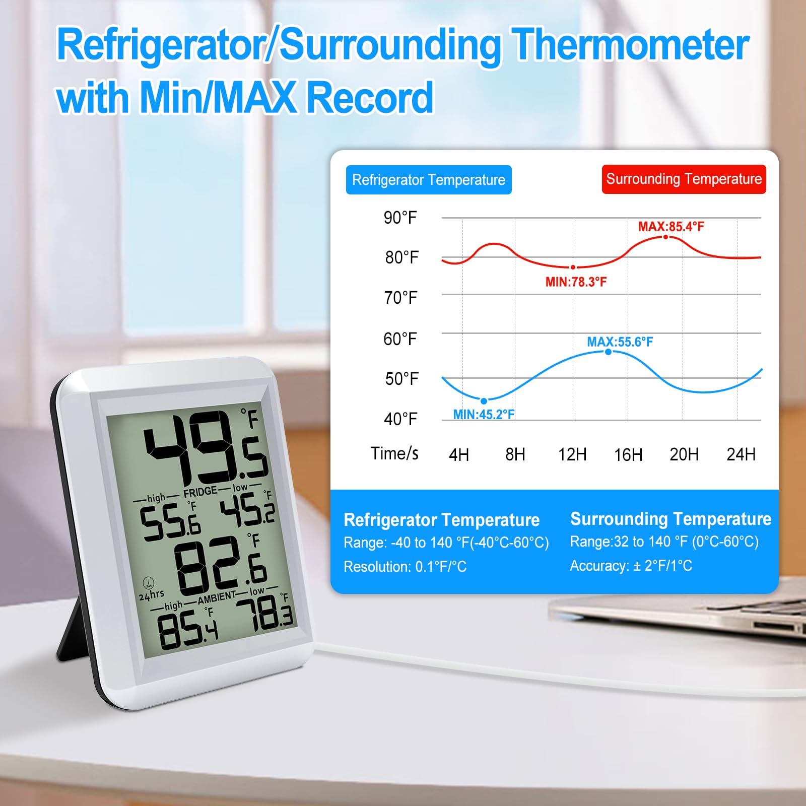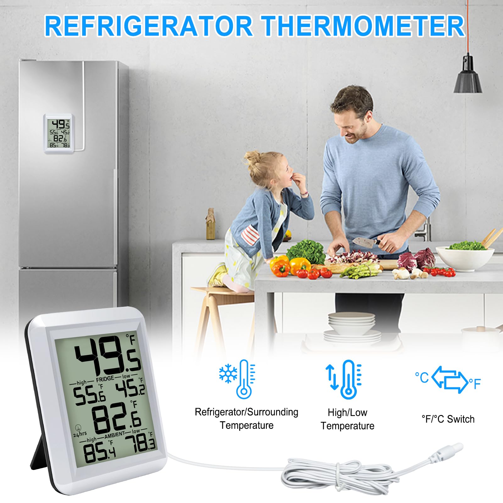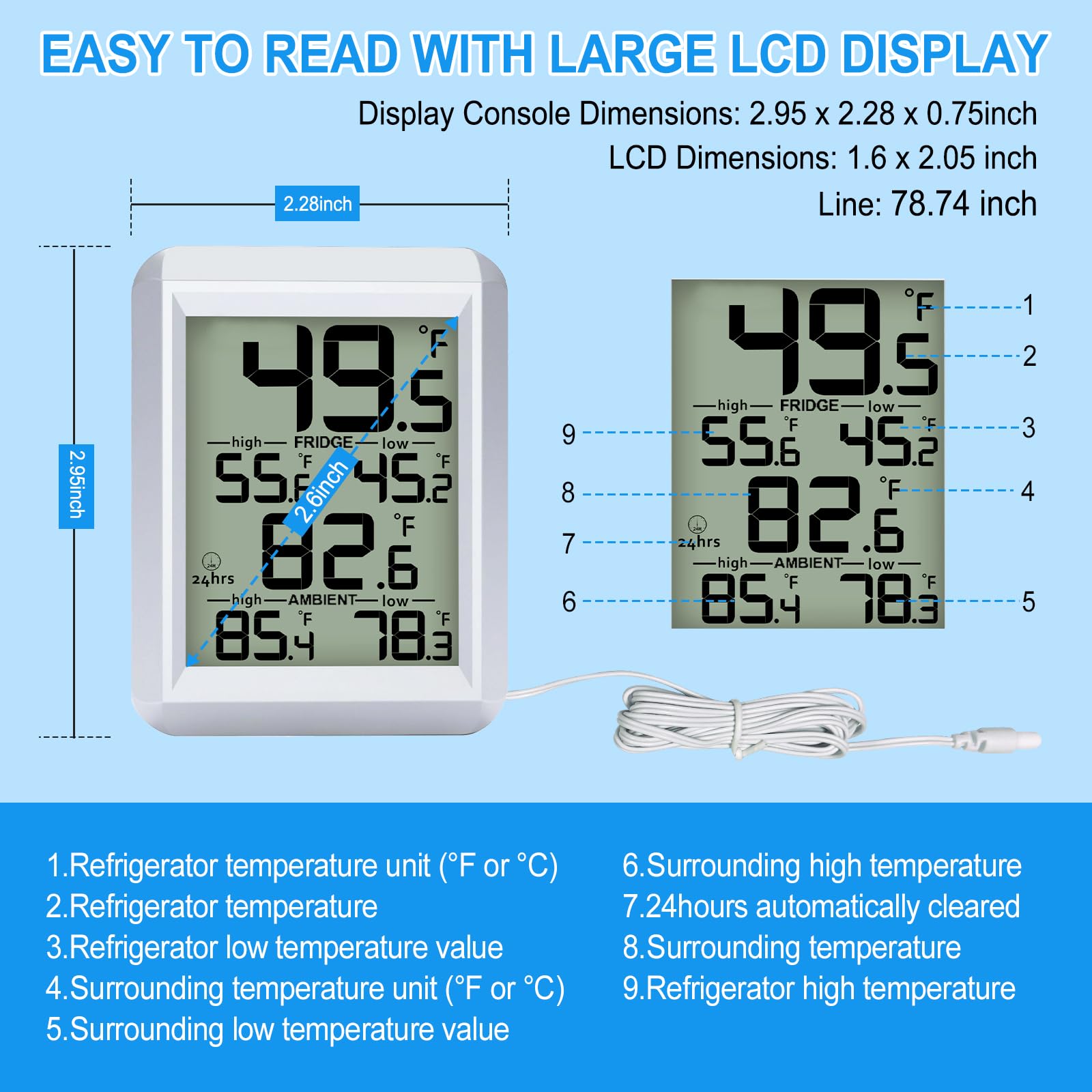 【Accurate Temperature Monitoring】The refrigerator thermometer with 6.5ft wired probe is easy to monitor the cold temperatures. Keep your food fresh and safe with precise temperature readings for both your fridge and freezer compartments.