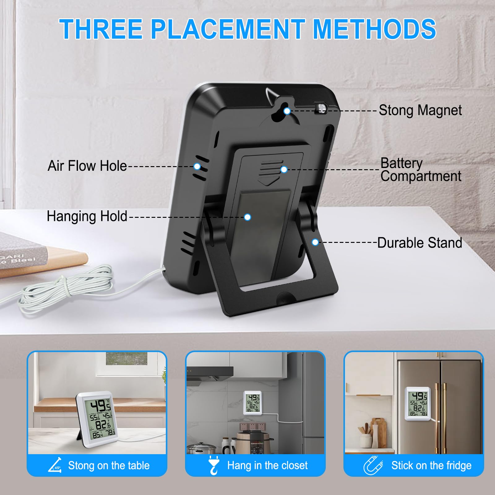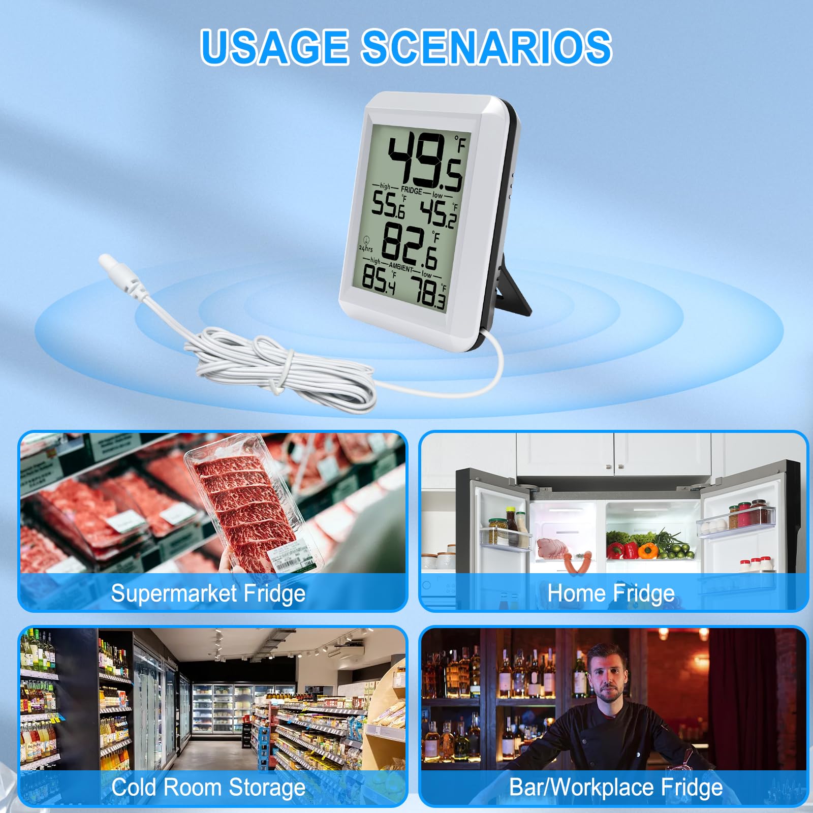 【Widely Application】Digital refrigerator thermometer can measure inside outside temperature, making it perfect for greenhouse, bedroom, living room, basement, refrigerator and freezer temp monitoring.