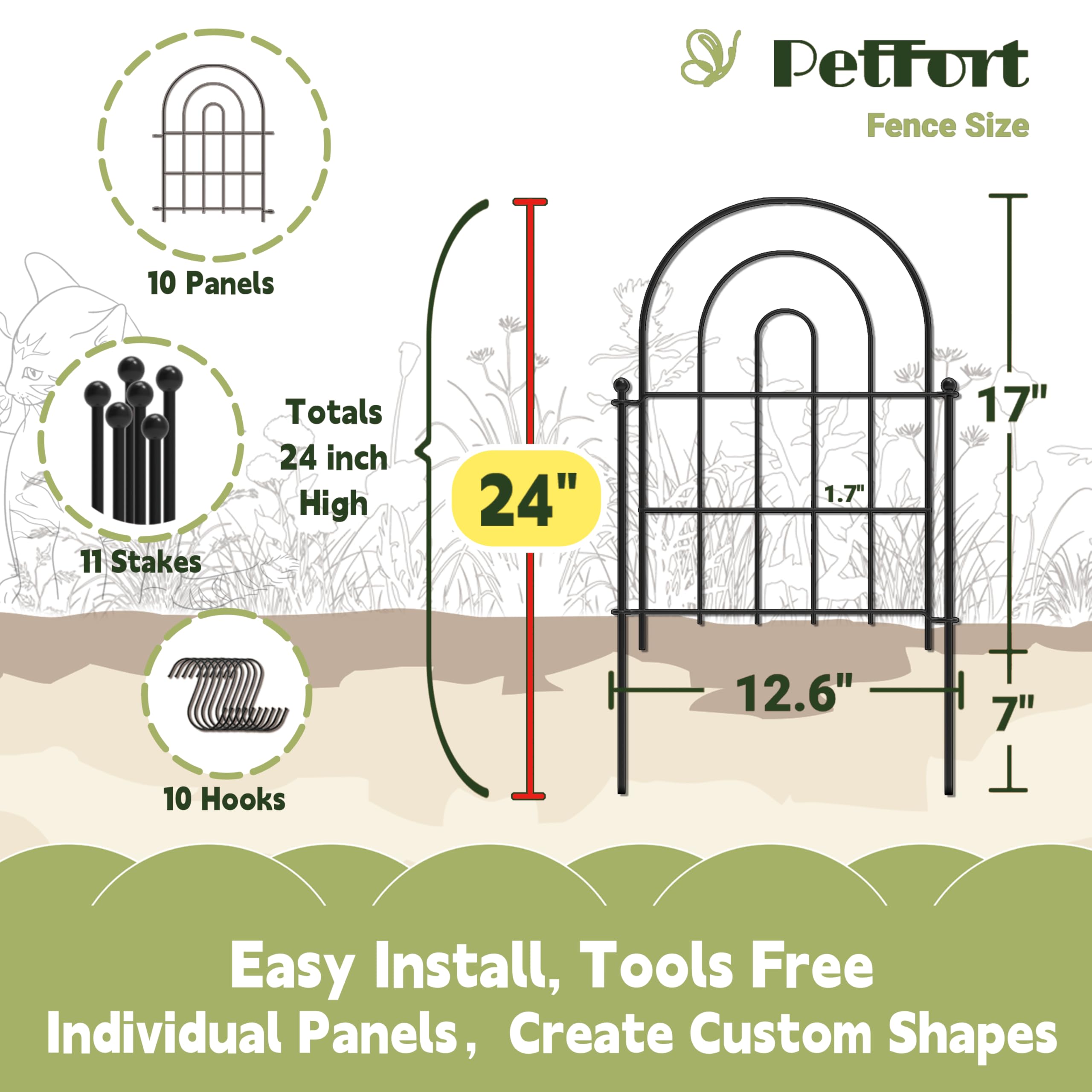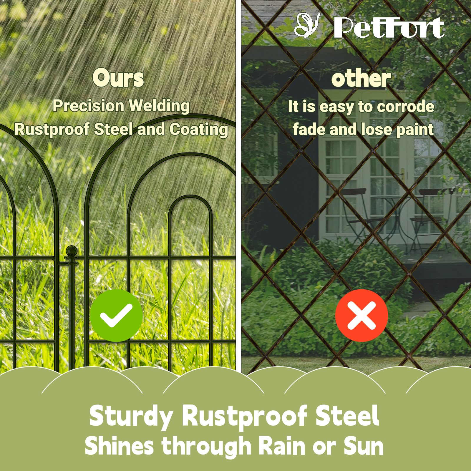 Sturdy and Easy to Clean: Made of rustproof metal, this no-dig outdoor short dog fence or low garden edging withstands all weather. Its smooth surface is easy to clean