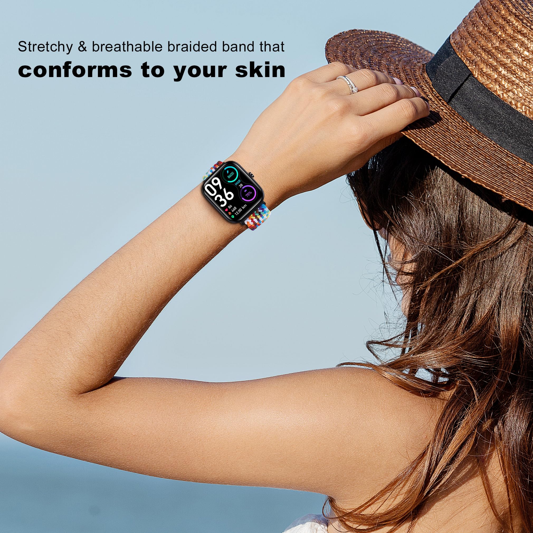 【Premium Material】The cloth woven bands are made of high quality nylon material,more soft durable and stretchy fabric strap will prevent your skin from irritation or allergy, flexible, lightweight,washable and quick-dry,keep your wrist comfortable all day.