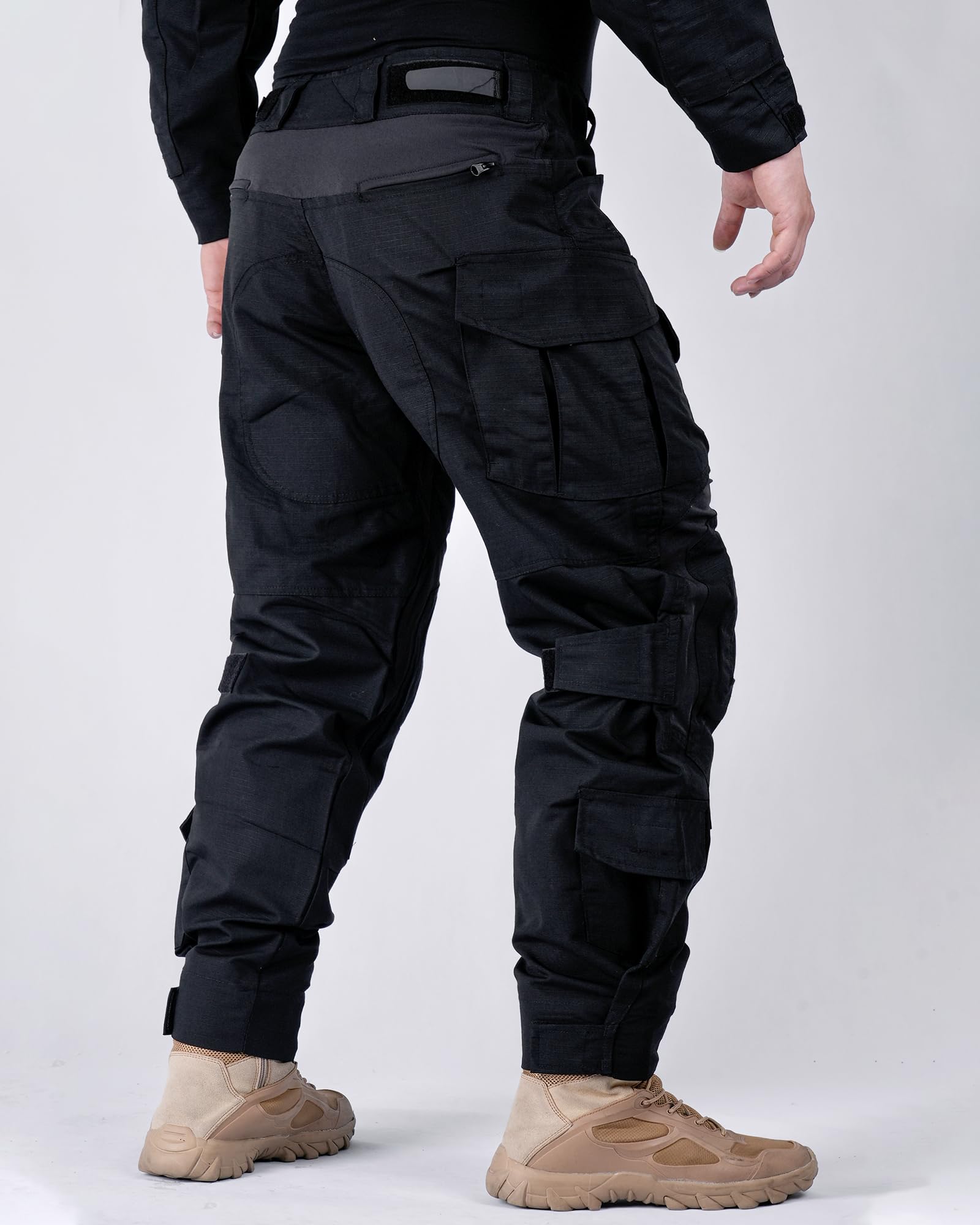 Multi pocket cargo pants for men: The camo pants men are with 10 pockets for tactical tools and self items. Including 2 front slant pockets; 2 thigh pockets; 2 side leg pockets; 2 side calf pockets; 2 zipper rear pockets.There are three hook and loop panels sewn onto the knee pad pockets top and sides which attach to the hook and loop material inside to pant legs which drastically helps prevent the knee pad blowing out