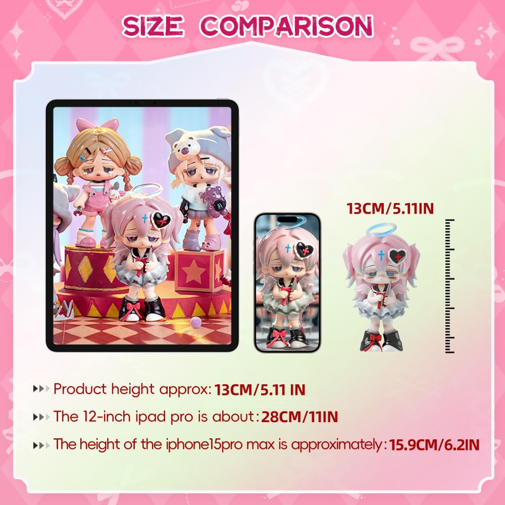 The height of the action figure: about 13CM (different for each model) Please refer to the pictures on the page for detailed sizes. Since the size is measured manually, there may be some errors.