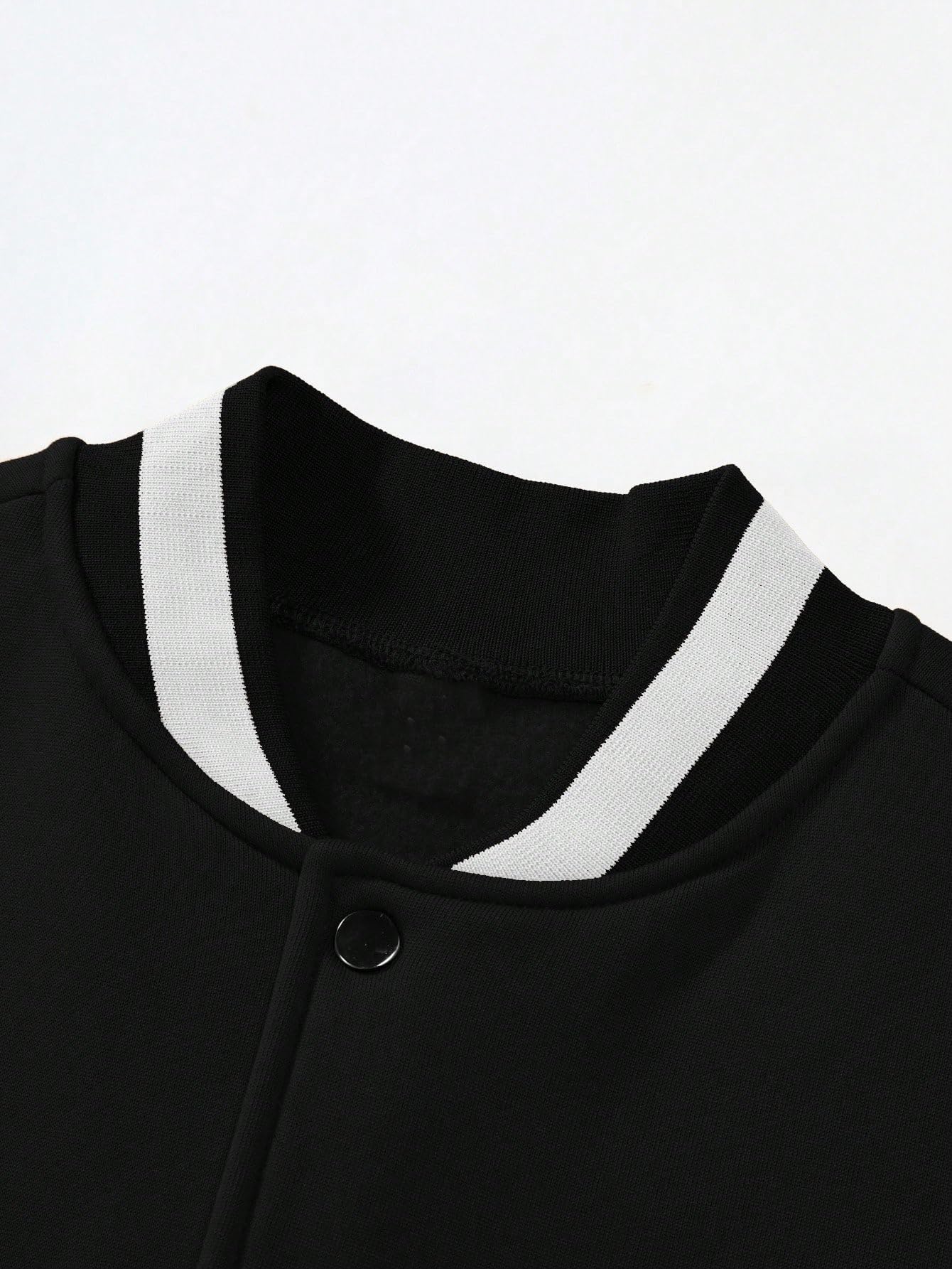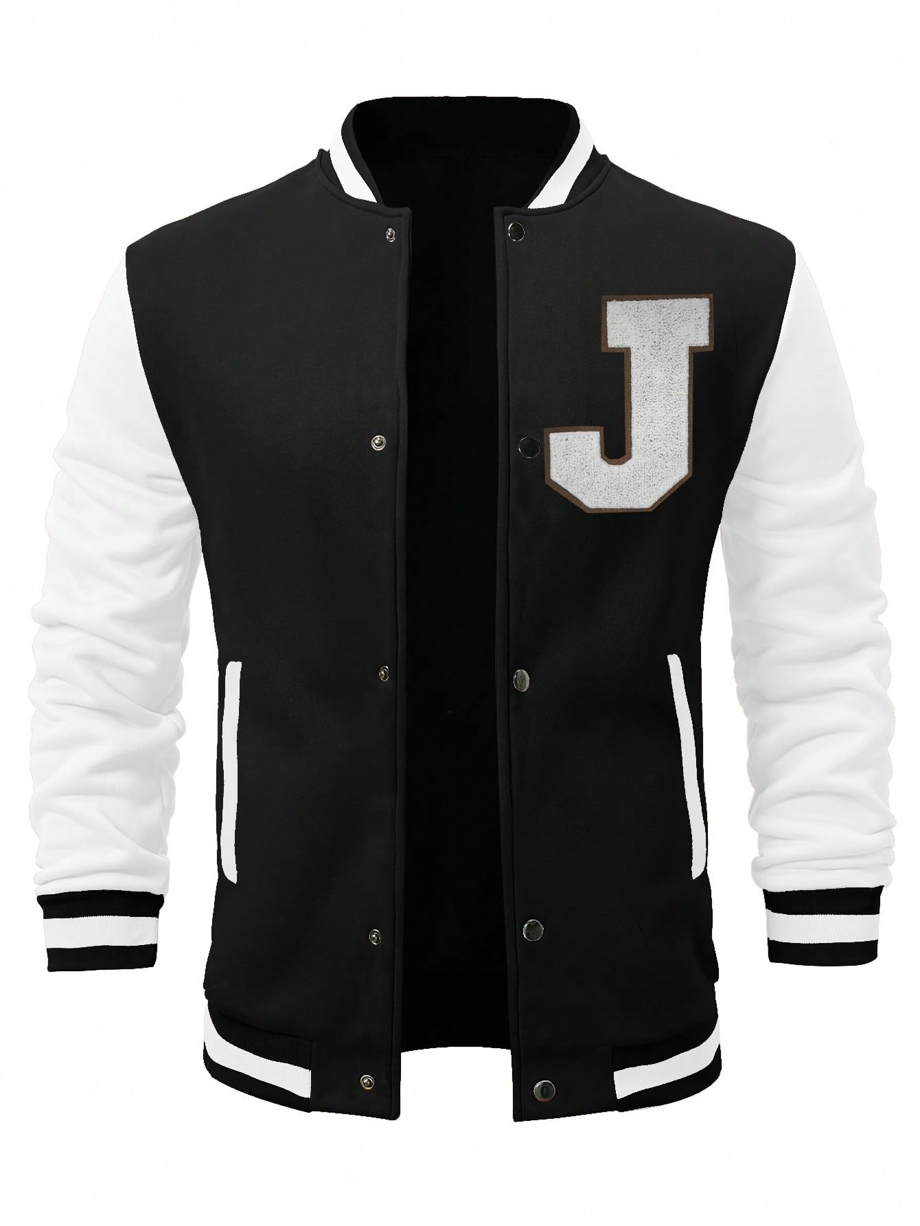 Casual color block letter print button up varsity jacket for men