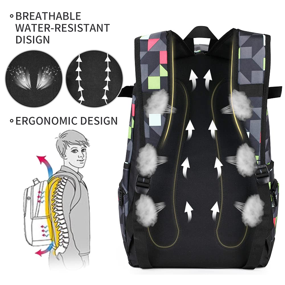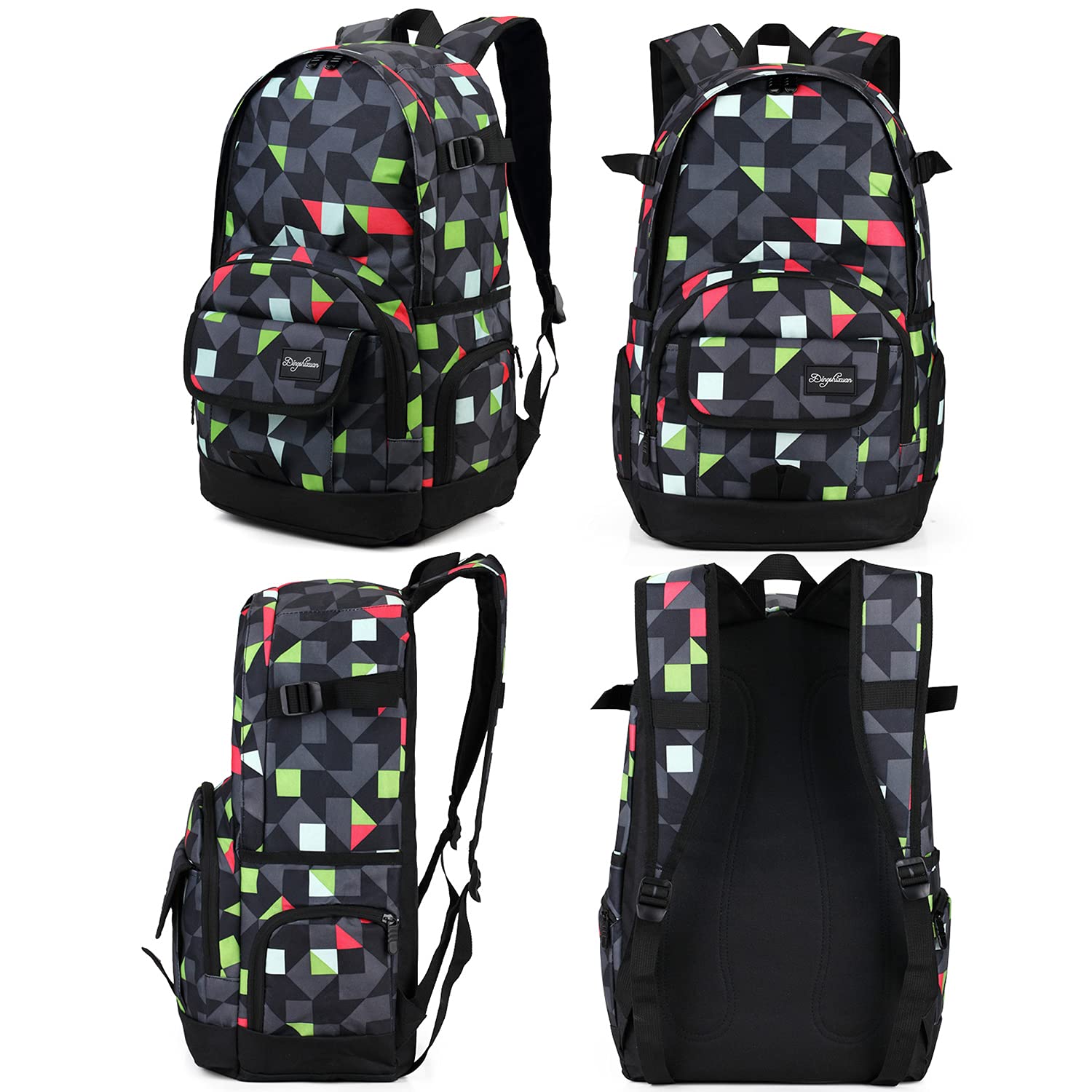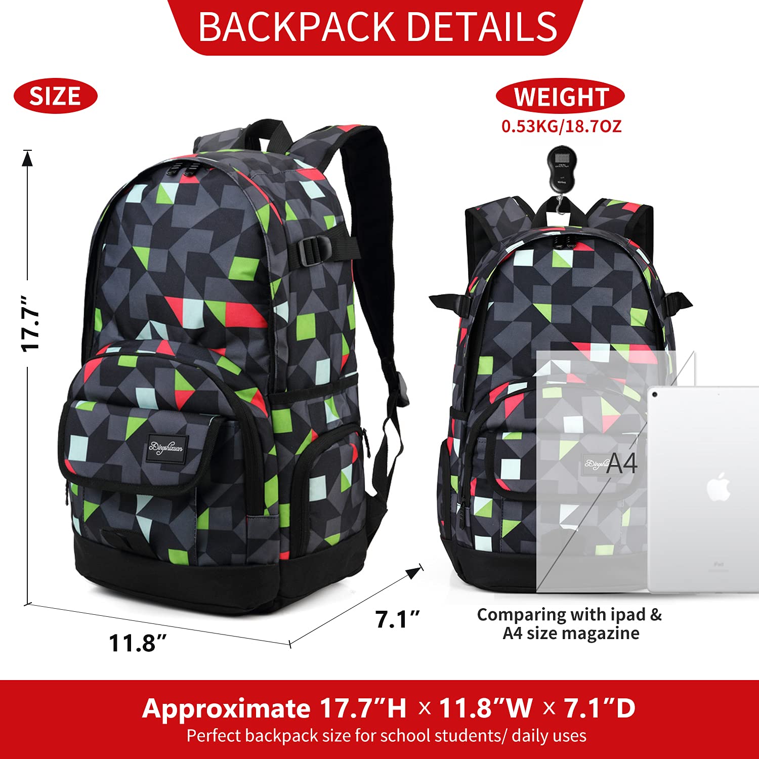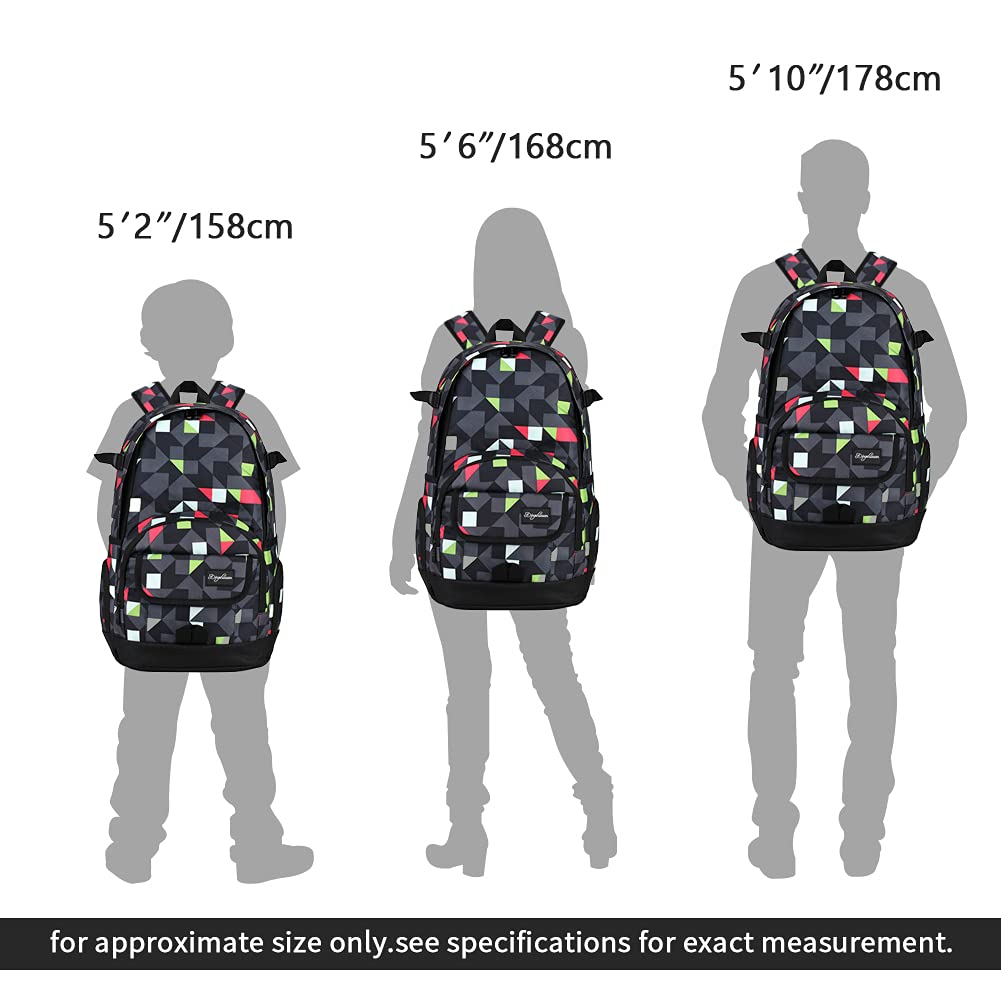 Description Flexible and ample storage space with scientific and reasonable layout design in Ricky-H’s conveniently portable bag makes getting out the door in the morning much easier. Multipockets layout allows small items (eg. Phone, pens, keys, chargers, power bank, sunglasses, ect.) and big items (eg. Laptop, A4 binders, textbooks, notebook, lunch box, sweater, towel, ect.) being organized neatly. -Suitable Occasion: School, Travel, Camping, Hiking, Gym, Office, Gift, Versatile. Whether to cater your day-to-day organizing basis or your "extra-curricular" uses, our backpack is versatile enough for many use, to be a book bag during the week and a travel backpack on weekends. Great choice as school bookbag or daypack, overnight backpack. Or even as diaper bag. -Applicable People: Men, Women; College/University Campus Students, High school, Middle school, Elementary, Primary school boys & girls; Parents, ect.)-Comfort with featuring ergonomic designed adjustable padded reinforced shoulder straps, makes the backpack all day use as a breeze. -High-quality, strong, long lasting nylon fabric builds our sturdy and solid backpack with great performance on water-resistance, anti- striking and anti-scratching. -Twin metal zippers with fabric flaps over to keep water out of the backpack and last much longer than plastic ones. Easy at opening and closing the backpack.Double stitching at stress points adds valuable security to seams, handles, and straps, enhancing the durability. And additional top handle provides extra help while lifting or moving the backpack. *Notes:1. Differences of 0.5-1 inch may occur due to manual measurement. 3.Item color displayed in photos may vary slightly from the actual product due to monitor color settings.