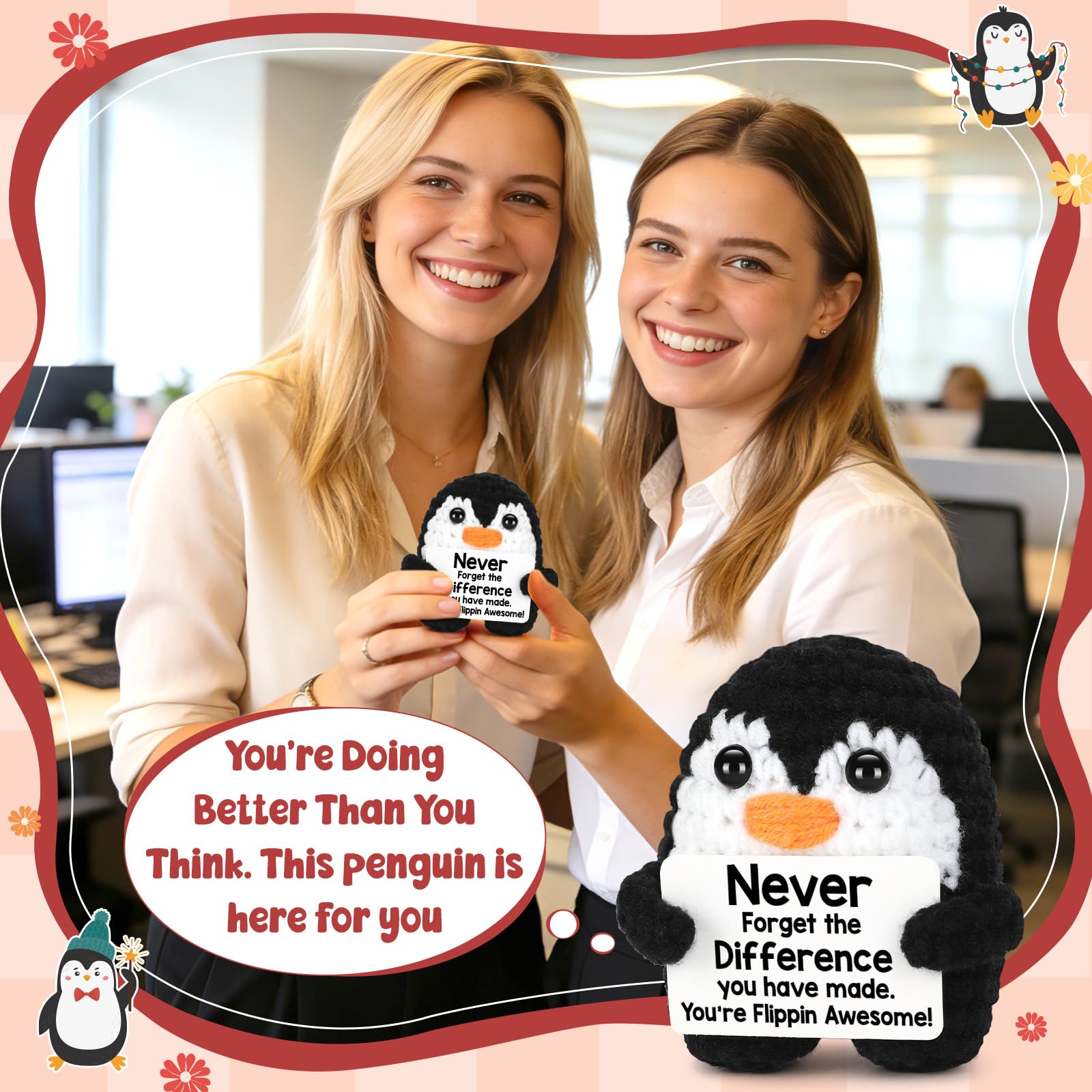 Mini Funny Valentines Appreciation Gifts for Women & Men: Still struggling to find the special gift to convey your thanks to someone your truly appreciate. This adorable handmade crochet penguin will be your best choice, it comes with the inspiring card "Never Forget the Difference you made. You're Flippin Awesome!" , is always there to remind them of their incredible self