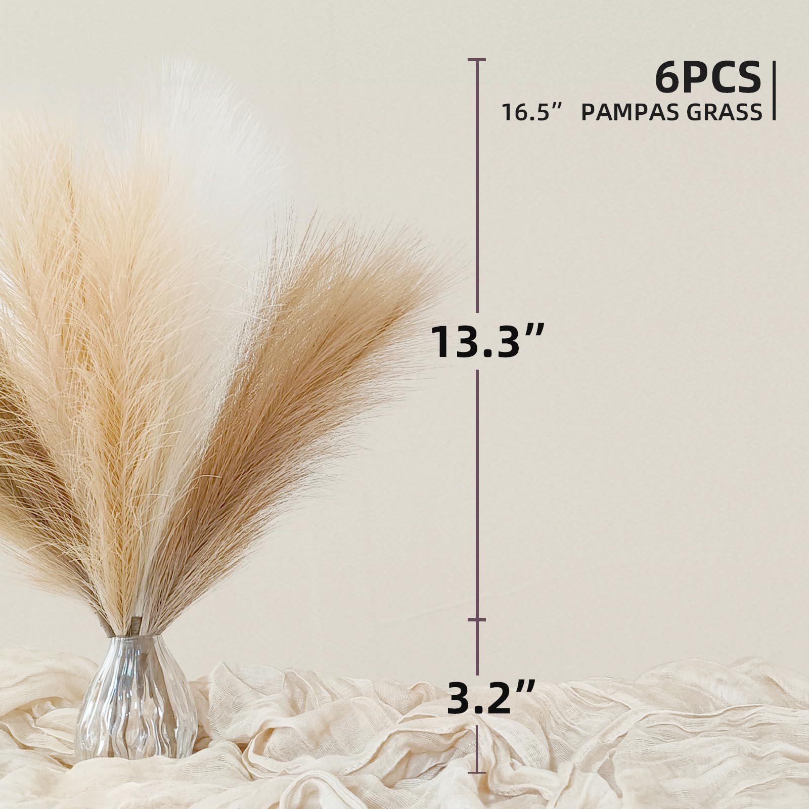 [Fluffy and Durable]: Each stem is full and elegant.The light and feathery plumes gives you the beauty of lush pampas. Simply fluff it up and put it in a vase to add some charm to your home decor. The pampas grass decor requires no maintenance or watering.