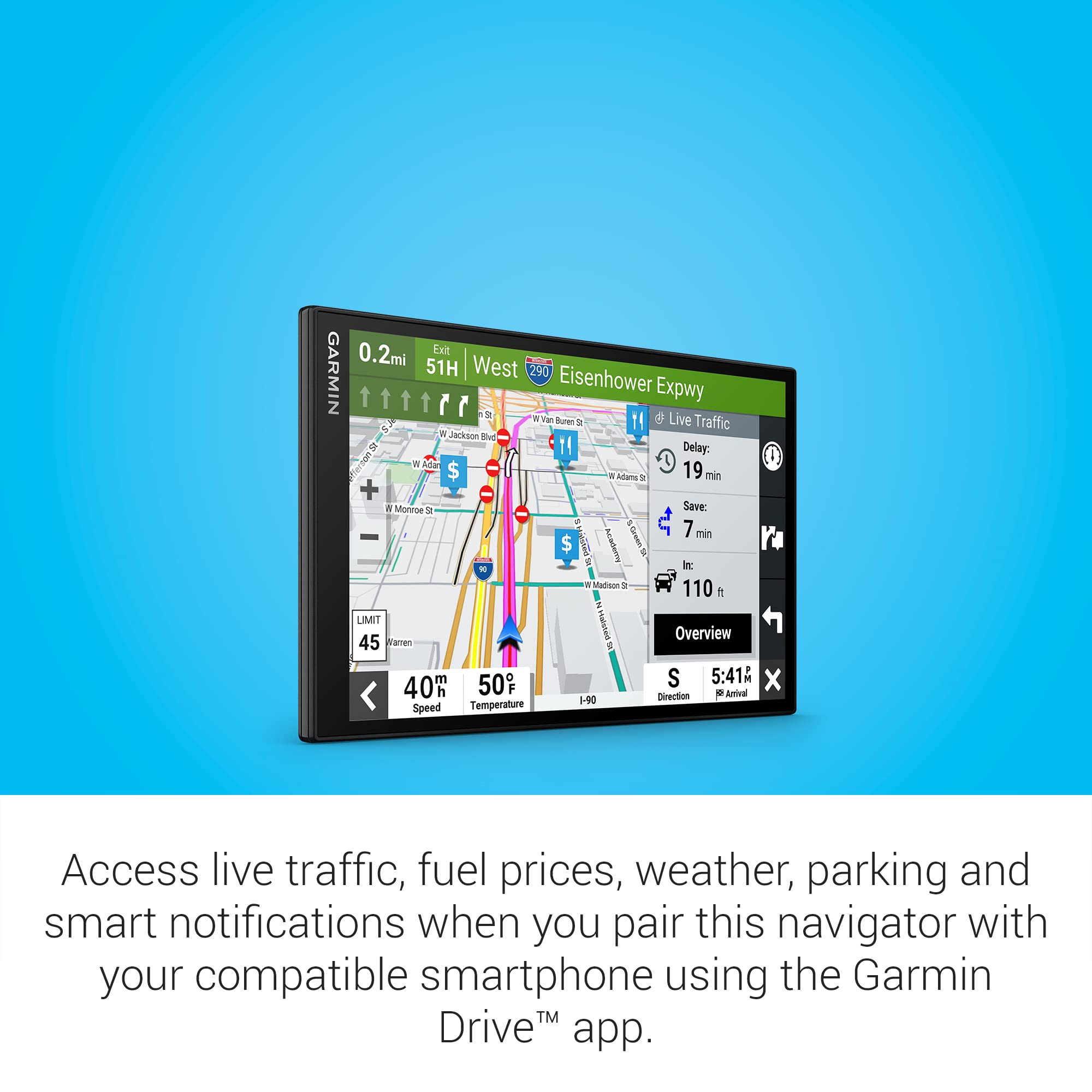 Access live traffic, fuel prices, weather, parking and smart notifications when you pair this navigator with your compatible smartphone running the Garmin Drive app