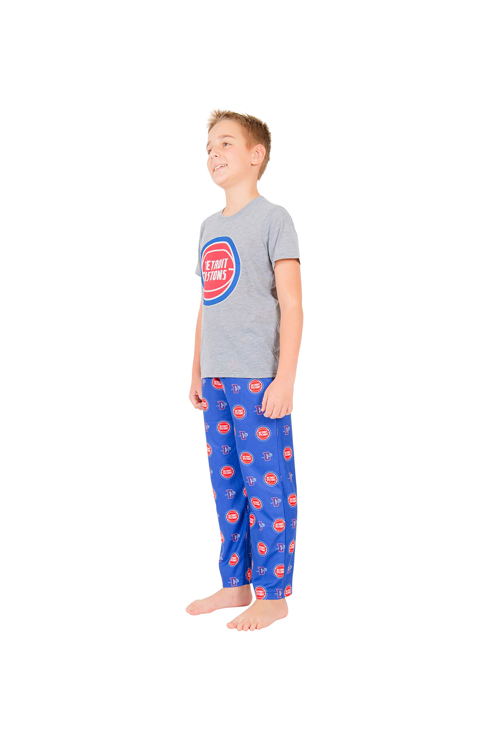 TEAM PRIDE: kids can show their NBA team pride from top to bottom with this set. The bottoms have an all-over print with the team's primary and secondary logos. The top has one large screen print of the primary logo across the front.