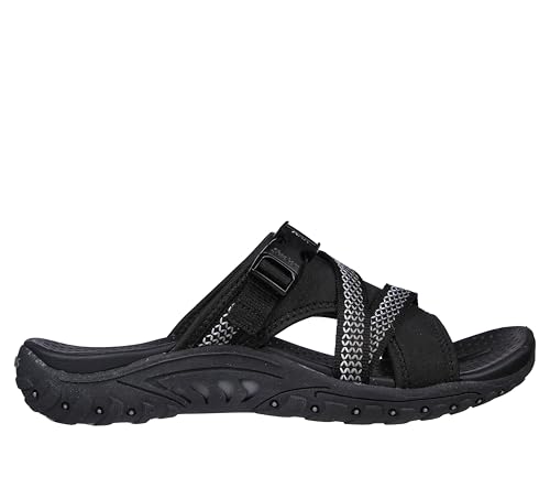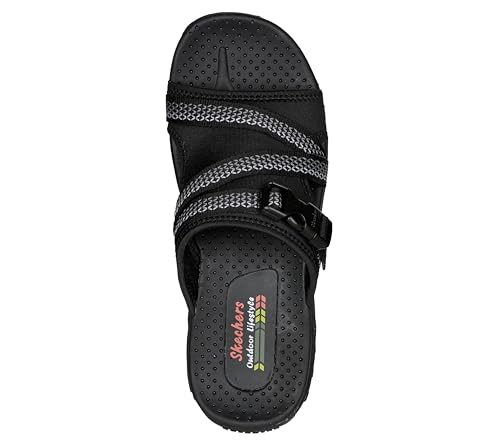 Description Explore the great outdoors in boundless comfort with Skechers Reggae - Slide Thru. This trail slide sandal features a webbing strap and neoprene fabric upper with a quick release buckle and a cushioned comfort footbed.
