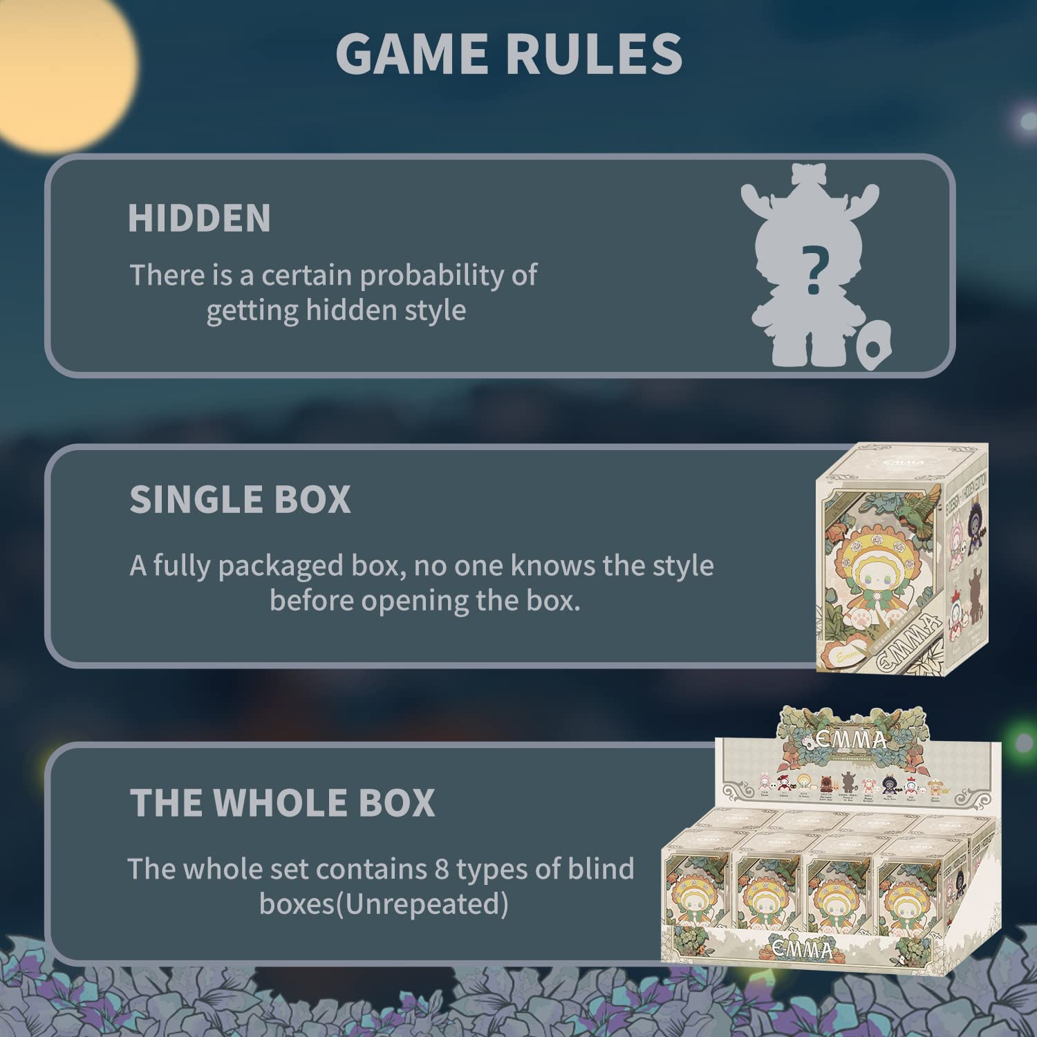 【About Random】Each blind box is randomly arranged. The chance to get a hidden figurine is around 1 in 96 blind boxes. The whole set consists of 8 different figures.