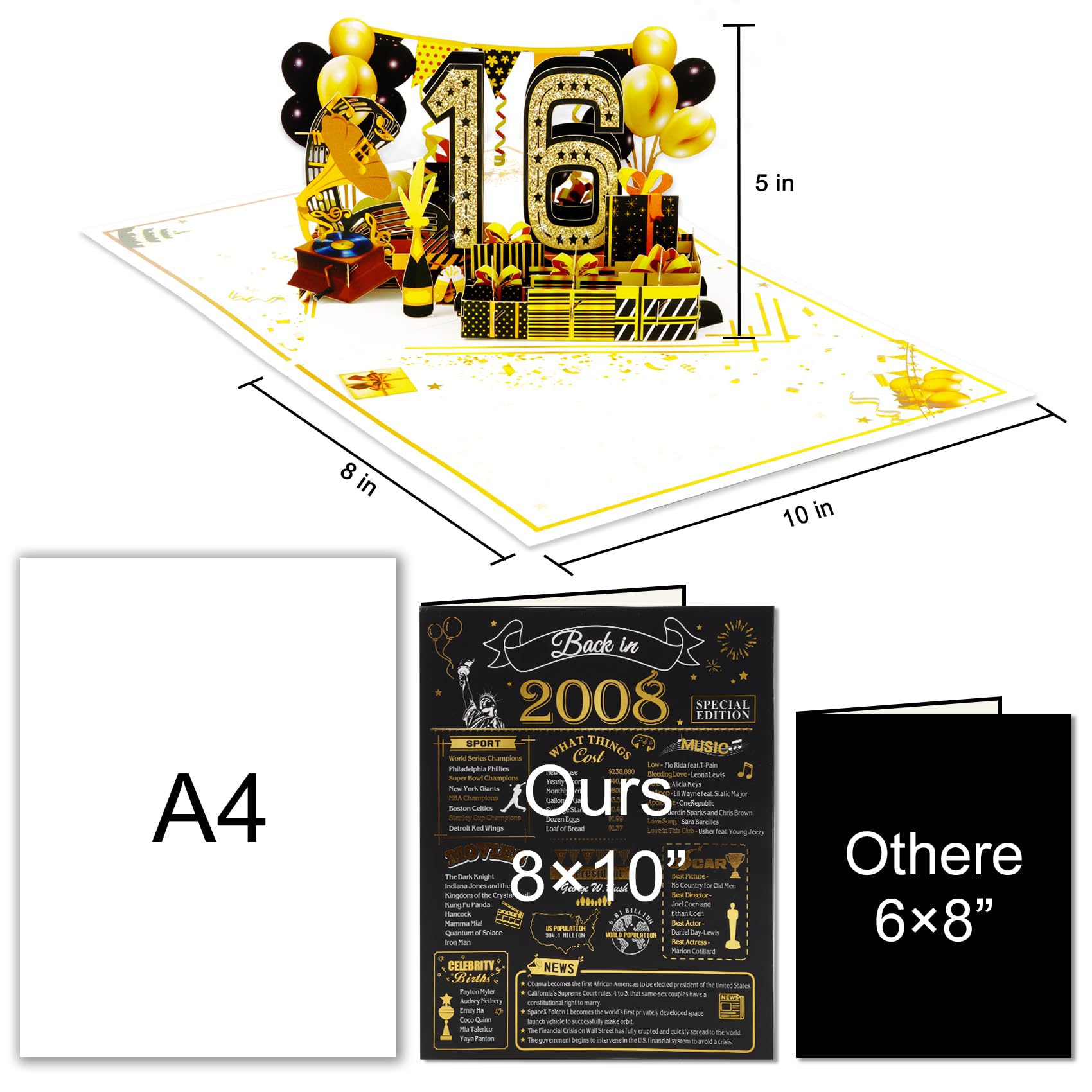 Great Quality: 8x10 inches on the front of poster greeting card, 16x10 inches when opened. Printed on high-quality 300gsm matt environment-friendly cardboard. The cardboard material of our birthday card is very hard and thick, and the surface is laminated to make it more durable