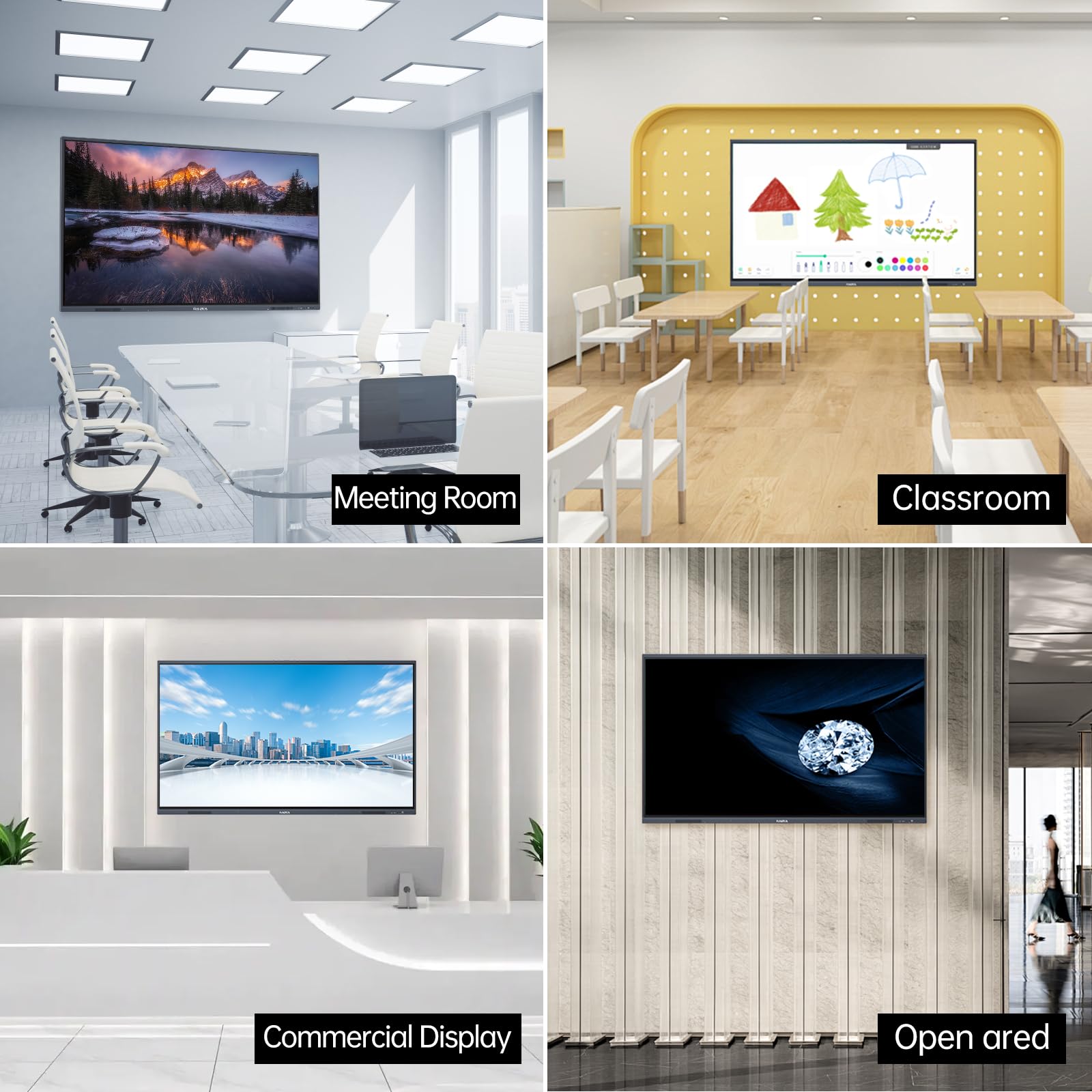 【All-in-one Smartboard】The RAIZEA smart whiteboard is based on Android 11 system with Cortex-A55 *4 CPU and 4G RAM (32G ROM) for smooth and efficient operation. The electronic whiteboard combines the functions of ordinary whiteboards, computers, tablets, projectors and other devices in one, which is very suitable for home, office and teaching.