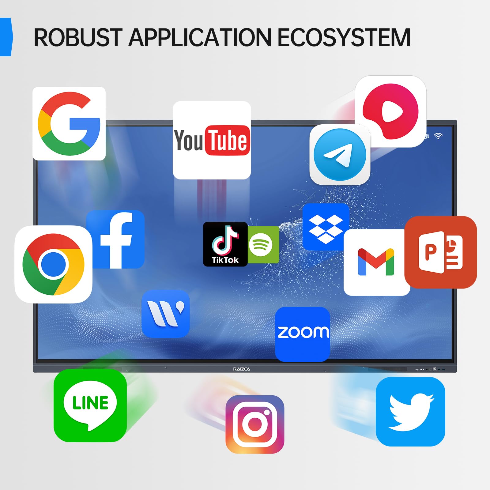 【Robust App Ecosystem】The RAIZEA electric whiteboard allows you to download different apps you want from the internet to meet your various needs.
