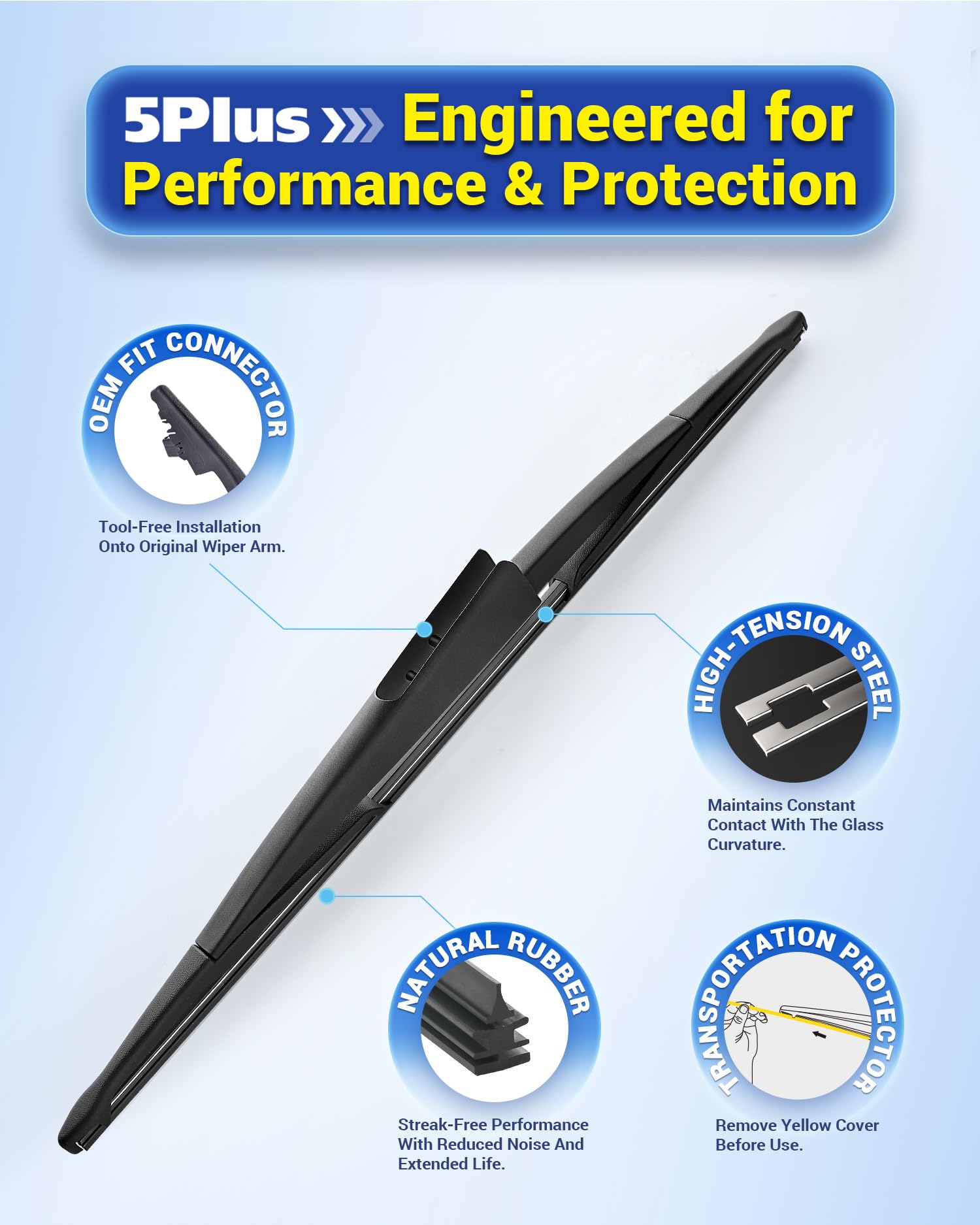 【Quick 1 Minute Installation】Install your rear wiper blade in just 60 seconds — no tools required! Simply snap it into place and you're done.