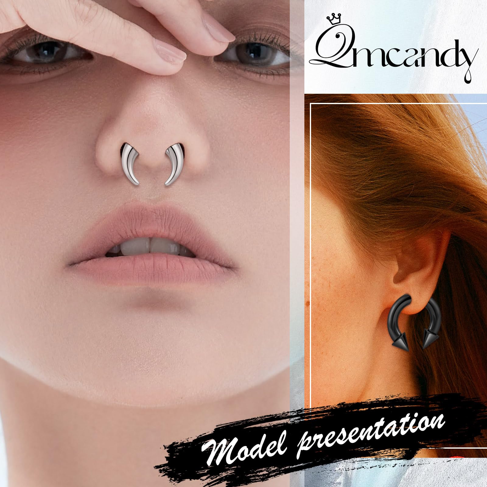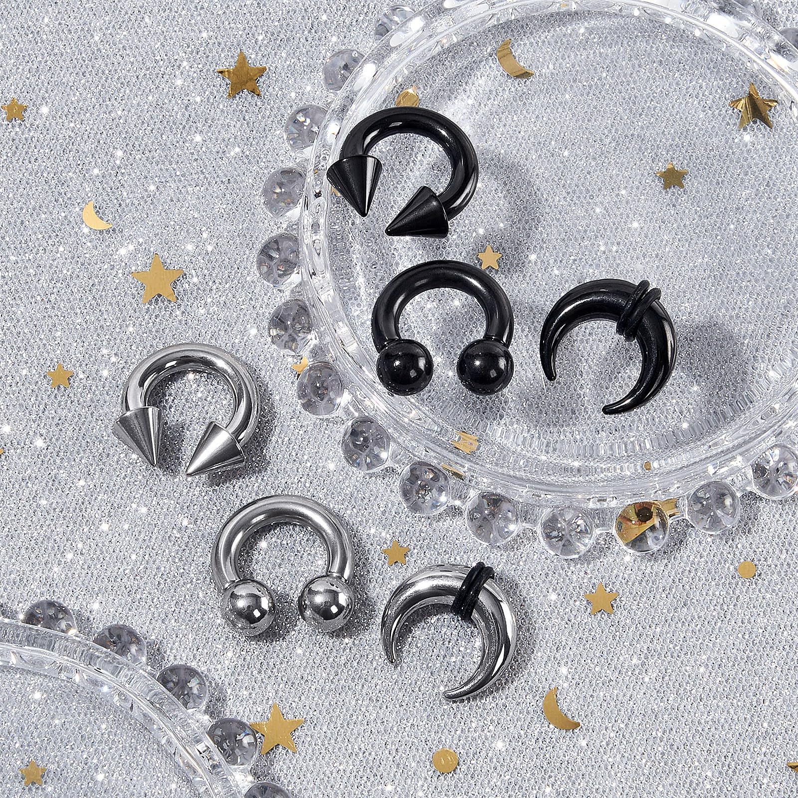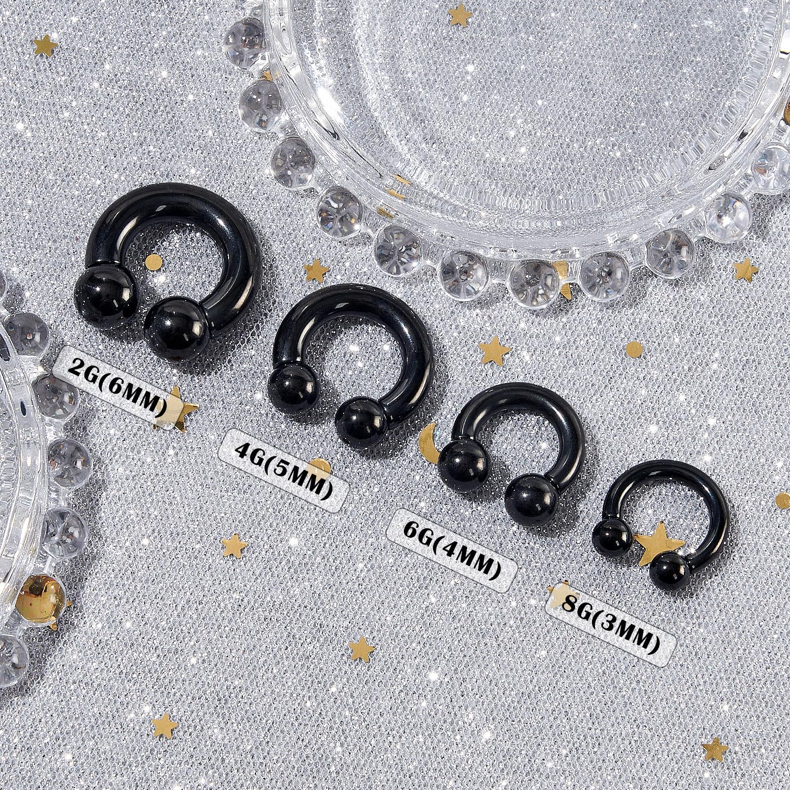 💓Value Pack - You will receive a set of 6 pcs septum rings in same sizes (8G, 6G, 4G, 2G to choose), with inner diameters of 12mm and 14mm, spike/ball size of 8mm, available in silver and black colors.