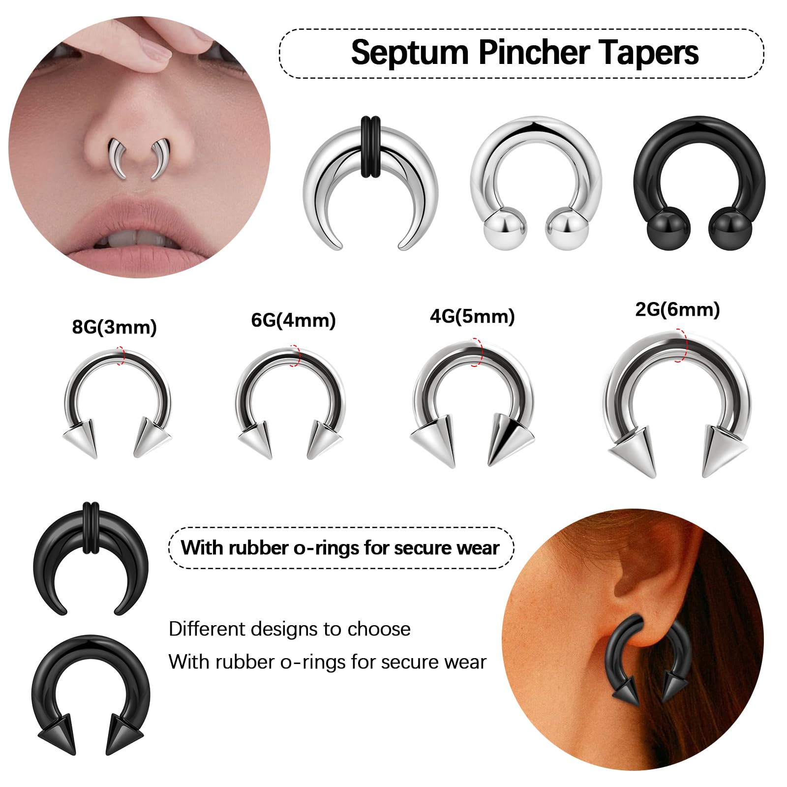 💓Premium Material - Crafted from high-quality 316L stainless steel, our septum pincher tapers ensure durability and long-lasting wear, providing a safe and comfortable stretching experience.