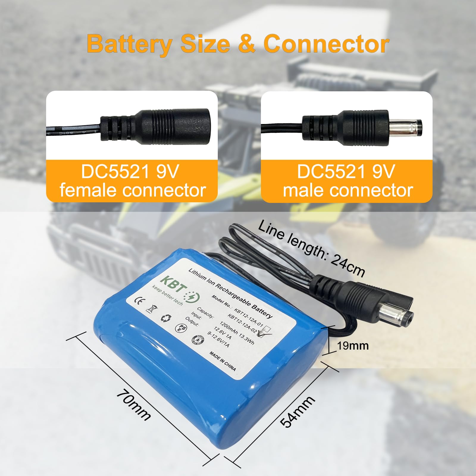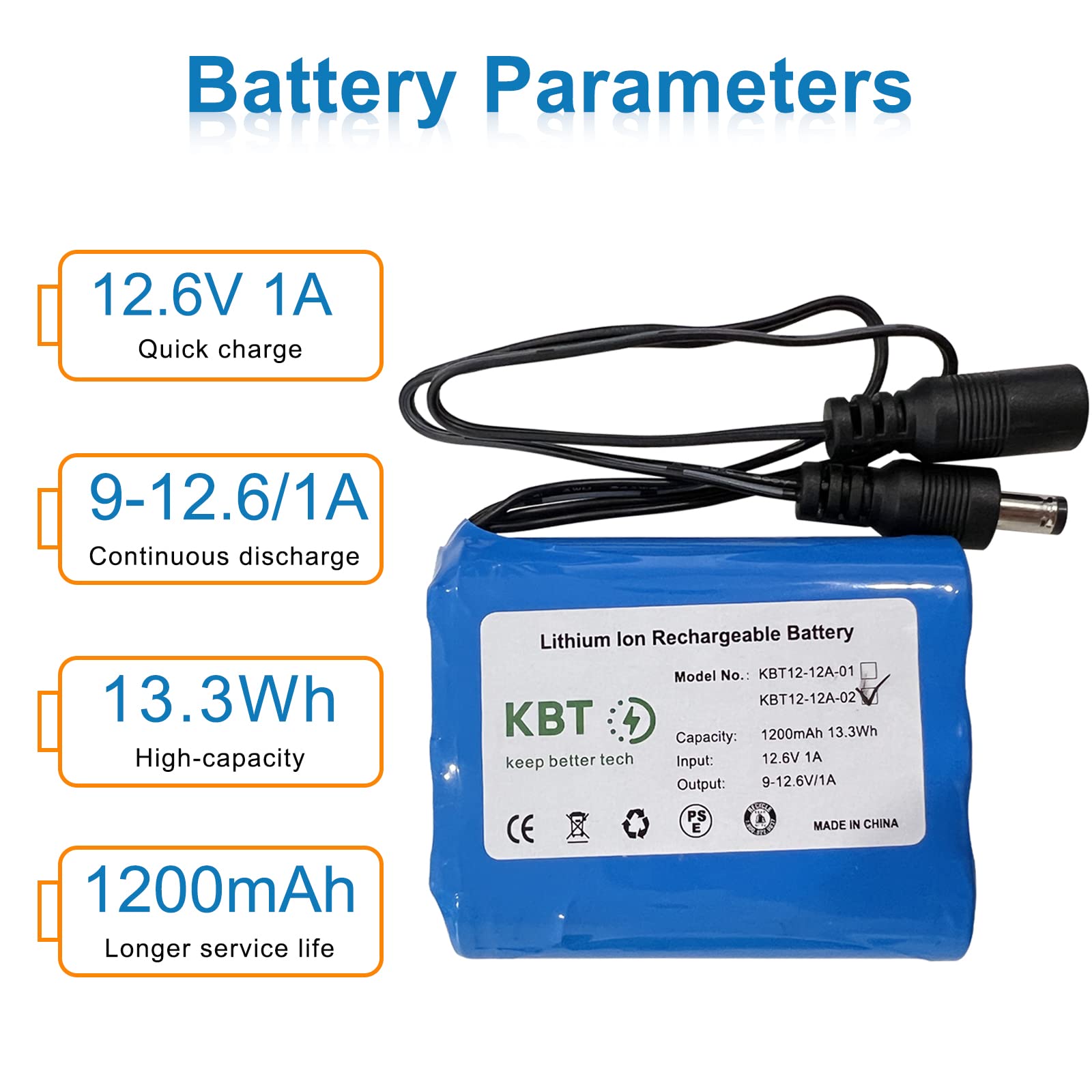 Long using life: this 12V battery pack build with lithium-ion battery, no memory effect, is of over 800 times charge-discharge cycles.