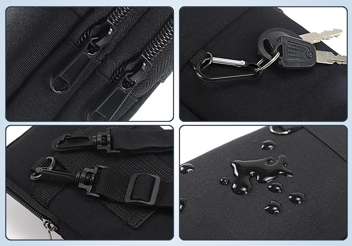 [Multifunctional Waist Bag] There is a 3inch width strap and a clip on the back of tactical bag, which is for belt or backpack strap. This phone holster can be used as a tactical backpack, belt bag, small tool pouch, utility belt, duty belt, hiking pouch or travel security pouch. This tactical wallet is suitable for travelling, cycling, hiking, camping and daily work.