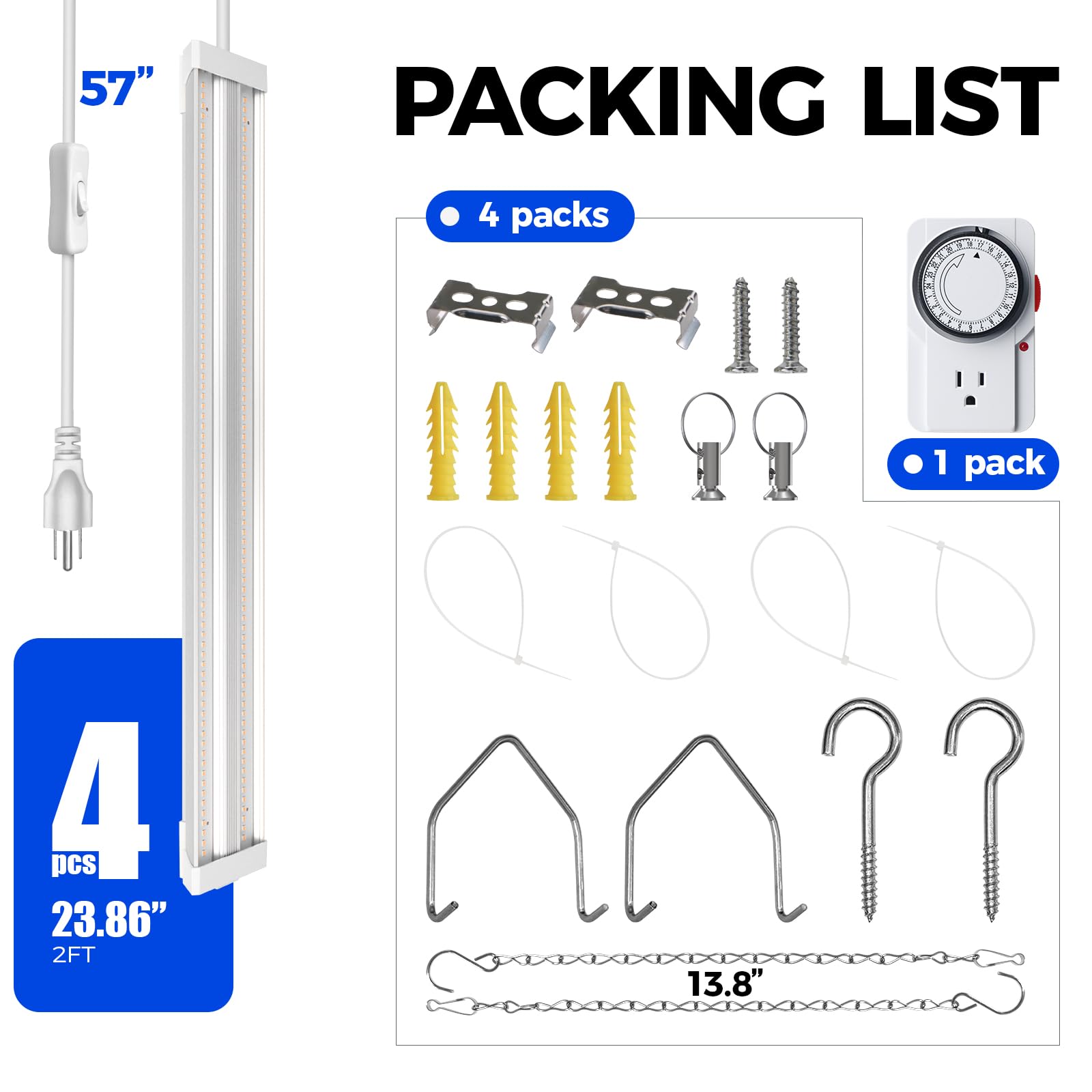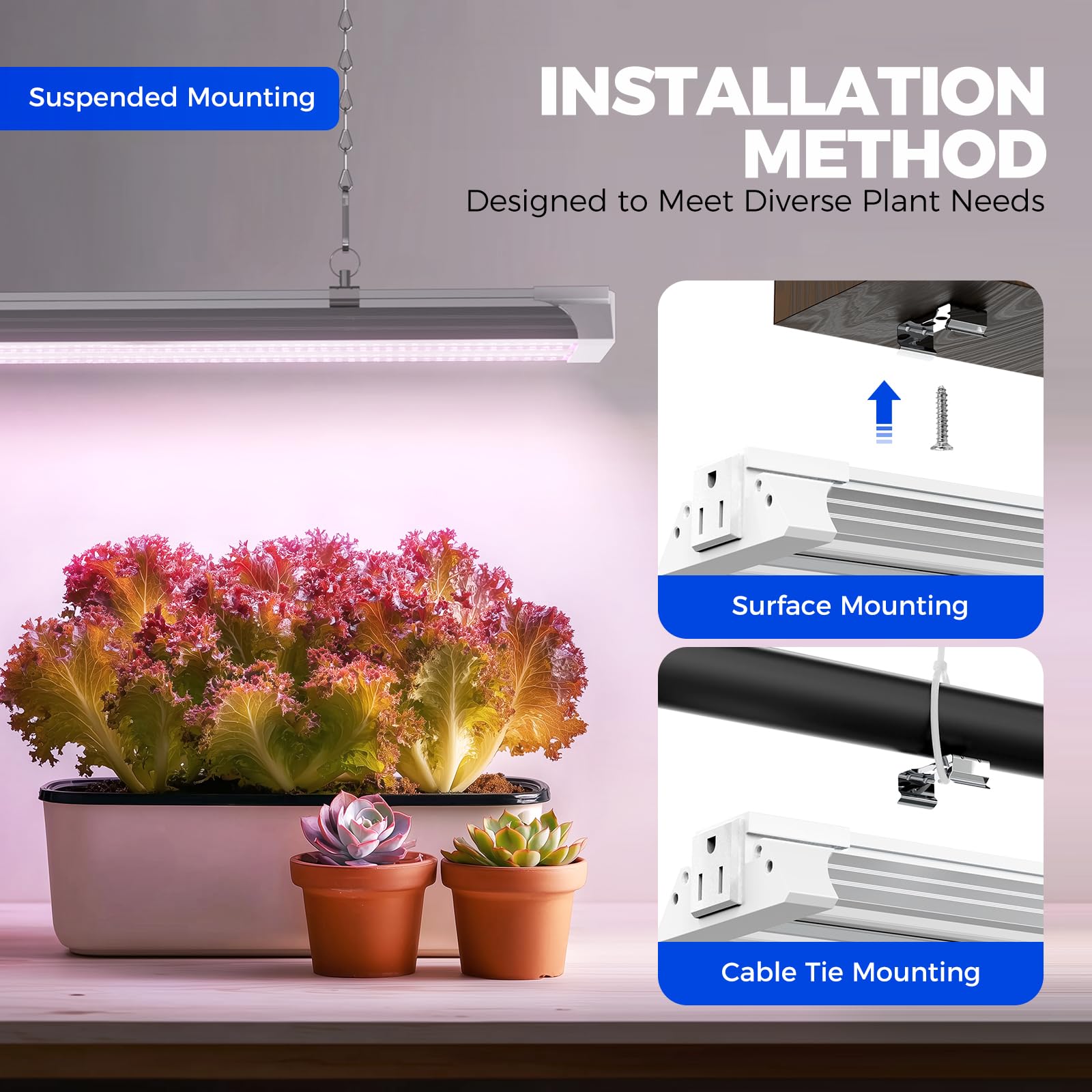 Red & Blue Full Spectrum: This 2FT full spectrum LED grow light features 620-680nm red light to accelerate germination, flowering, and fruiting, plus blue light to boost photosynthesis for stronger stems and leaves. With 2900 lumens and red blue synergy, it delivers ample indoor lighting to maximize plant growth and yield, and is ideal for succulents and other root tuber plants