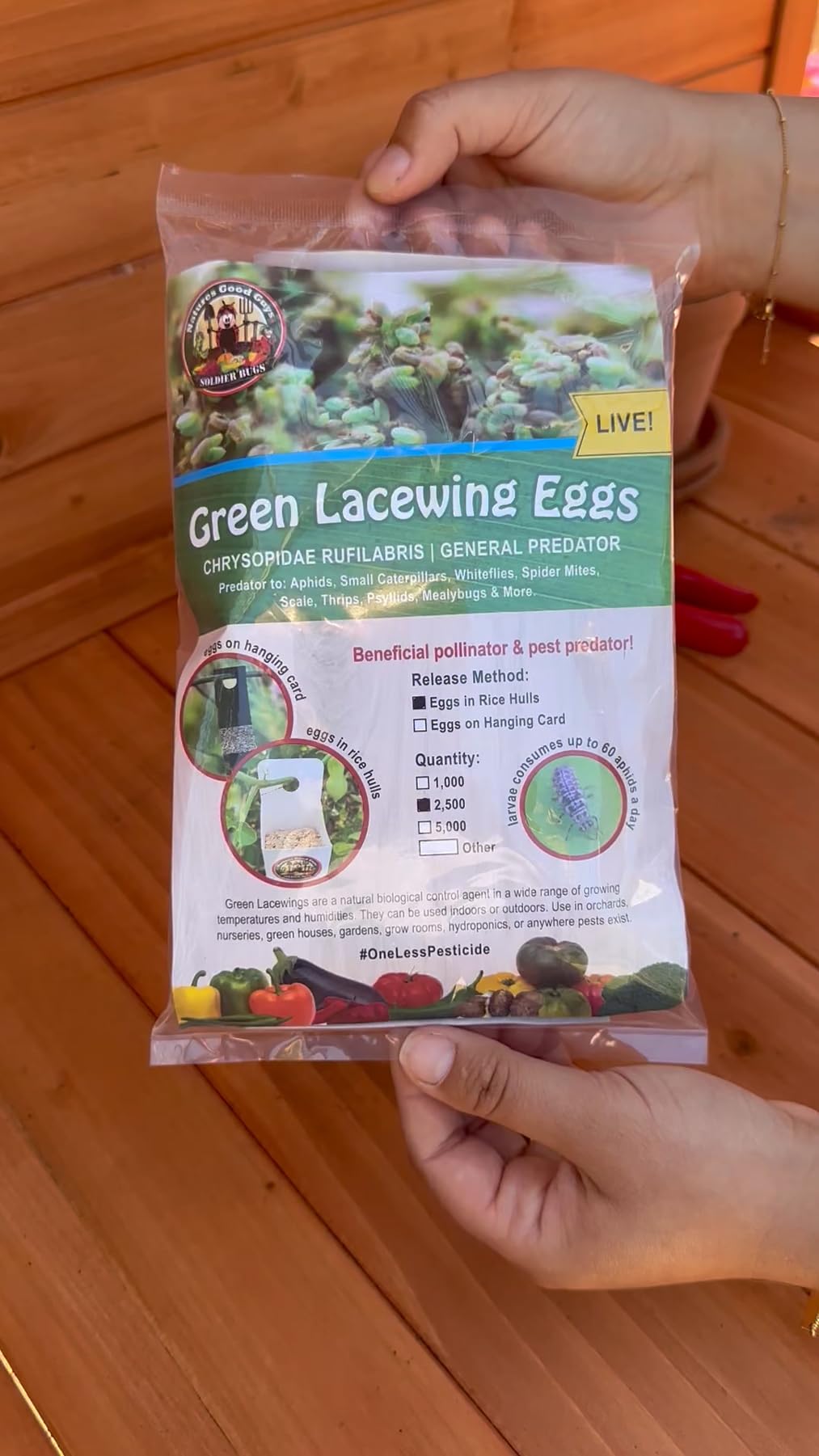 Wait to release Lacewing Eggs until you see larvae moving inside package.