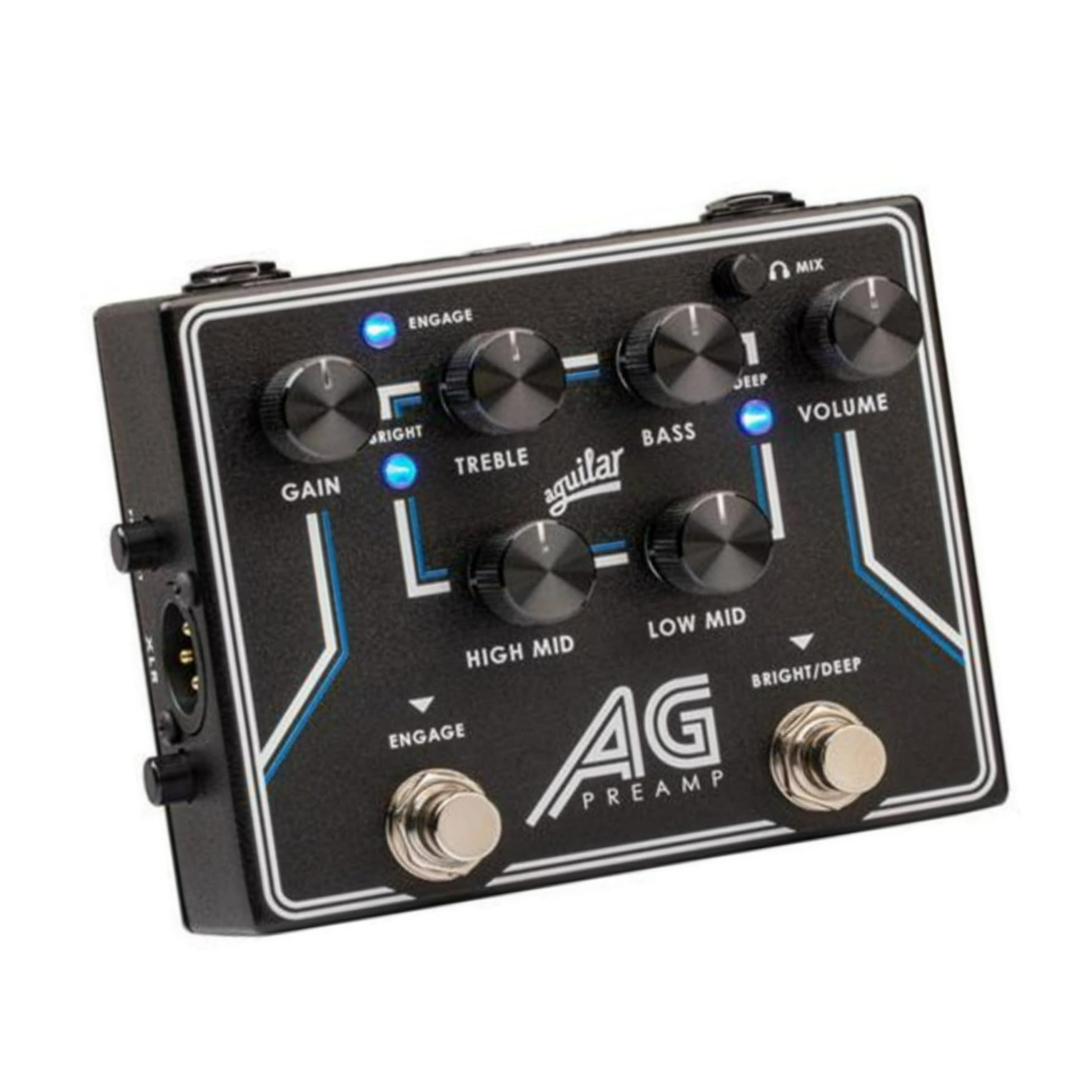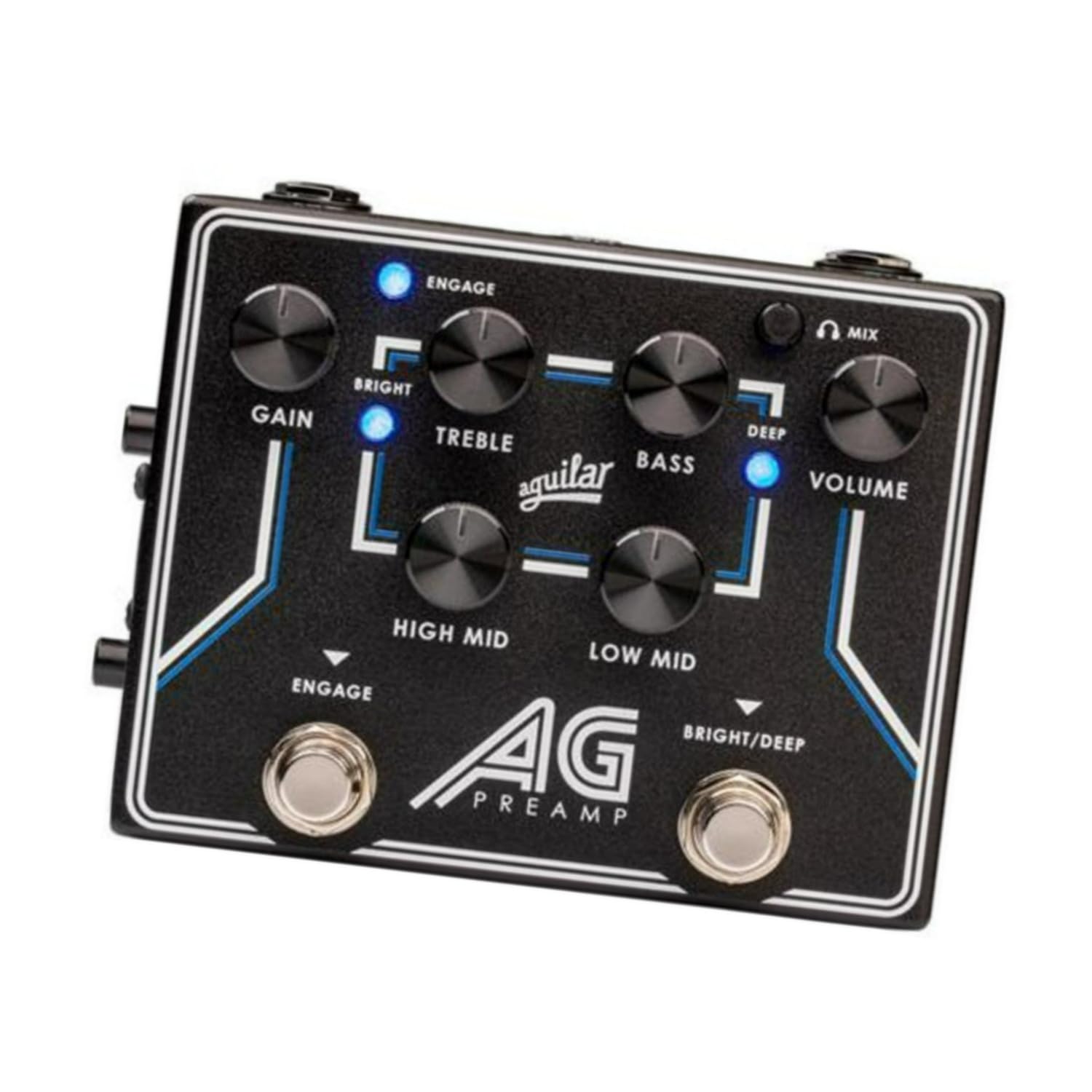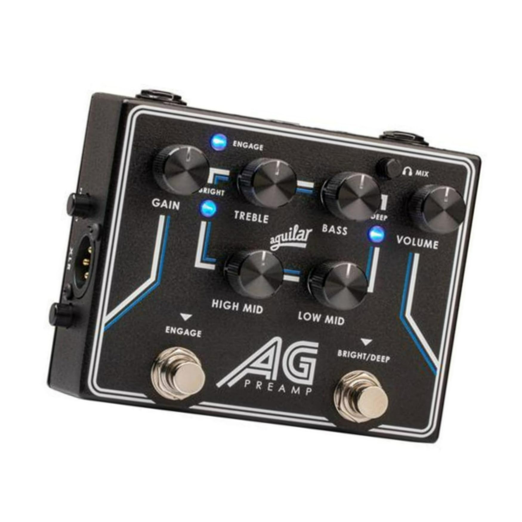 Footswitchable broadband Deep and Bright EQ Boosts