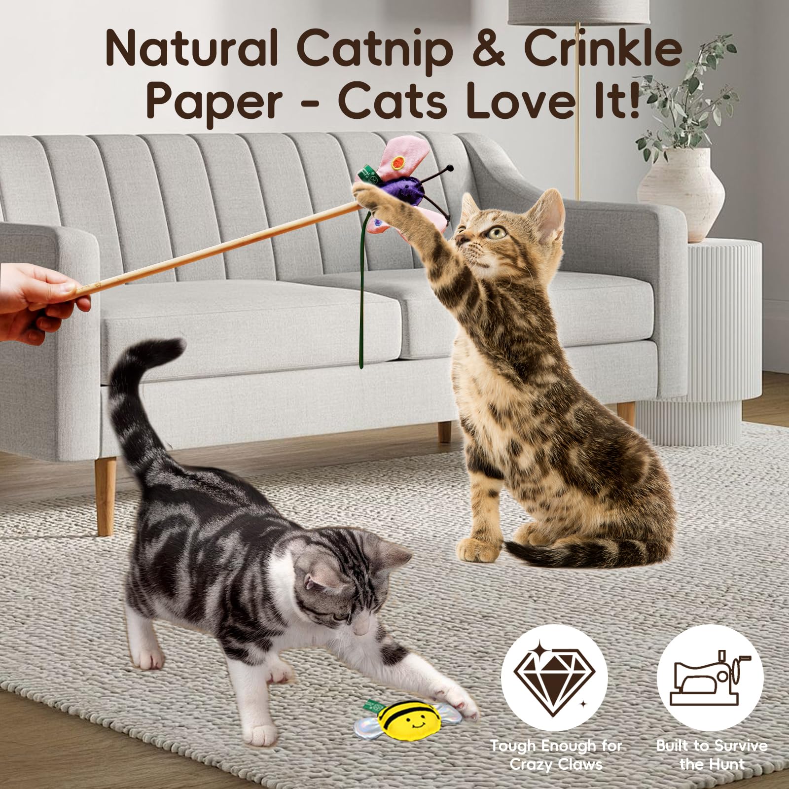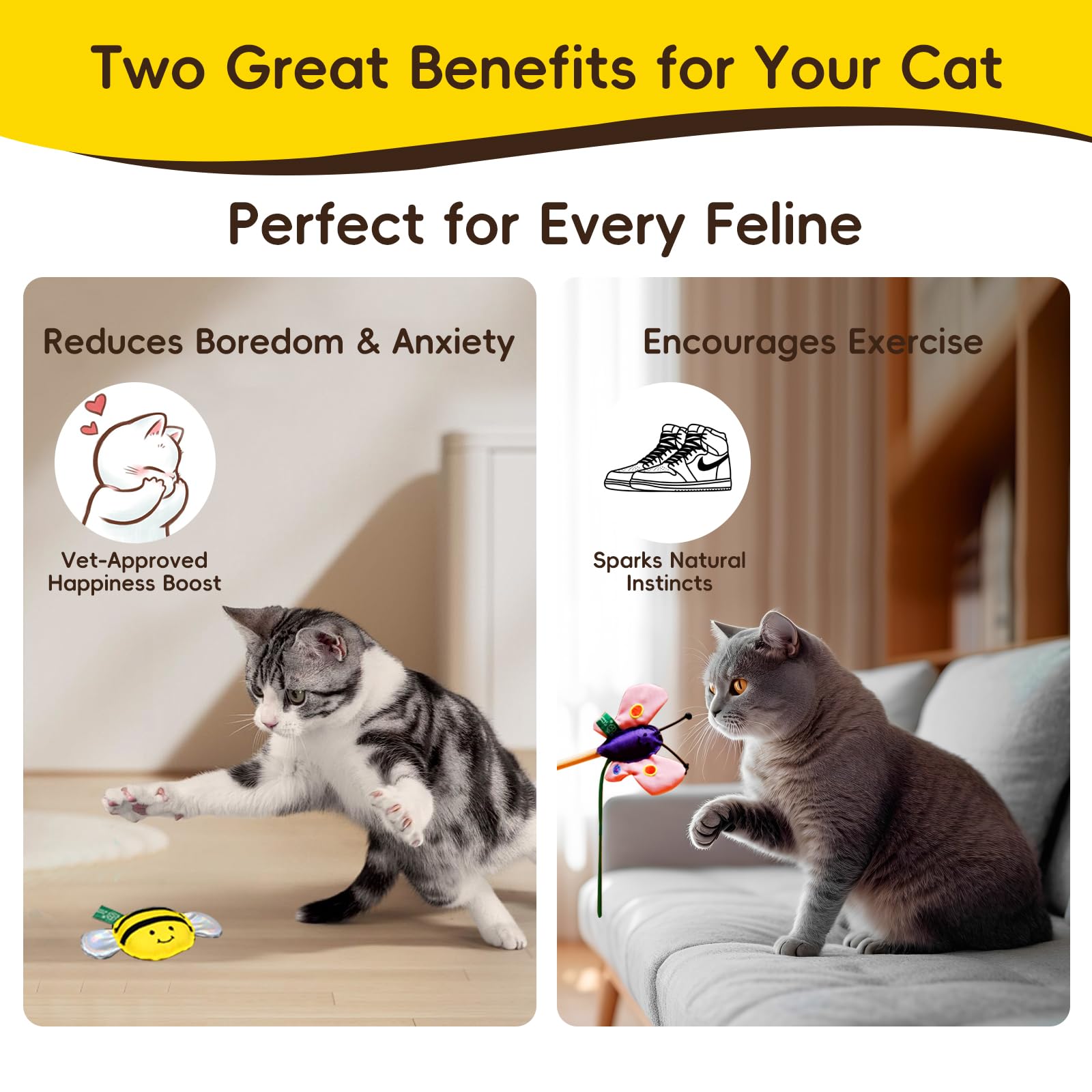 🎁 Two Irresistible Toys in One Set Includes the Butterfly and Honey Bee Cat Toys—double the excitement, double the playtime, perfect for multi-cat homes or extra variety.