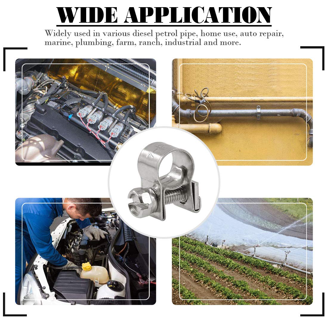 ☀【Function and Use:】These clamps are locking secure and tight, would work much better than standard hose clamps, widely used in various diesel petrol pipe, home use, auto repair, marine, plumbing, farm, ranch, industrial and more.