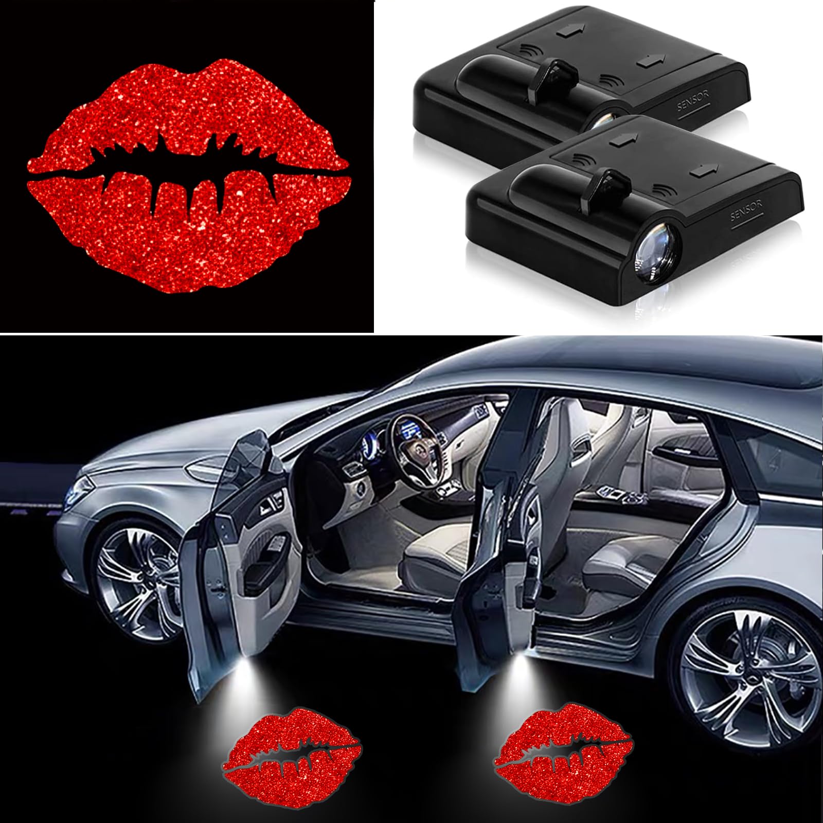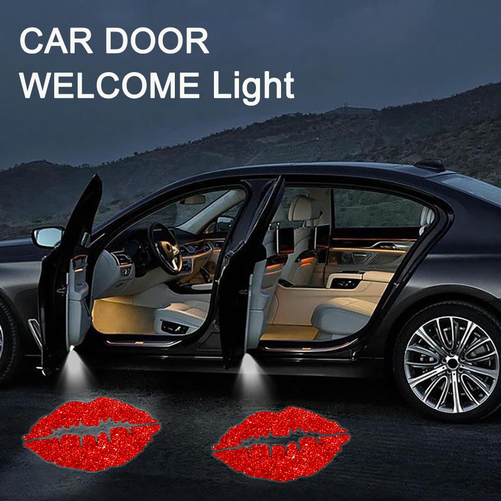 Illuminate & Confidence: Light up safety and feel confident. cute Red Lips car decor / Red Lips welcome lamp car door light not only mesmerize with their eye-Red Lipsching lighting, but they also enhance your driving confidence. Car puddle light it will illuminate the surroundings to provide greater visibility when entering and exiting the vehicle, providing additional safety. No matter day or night, shadow lights for cars it makes your driving safer and more confident.