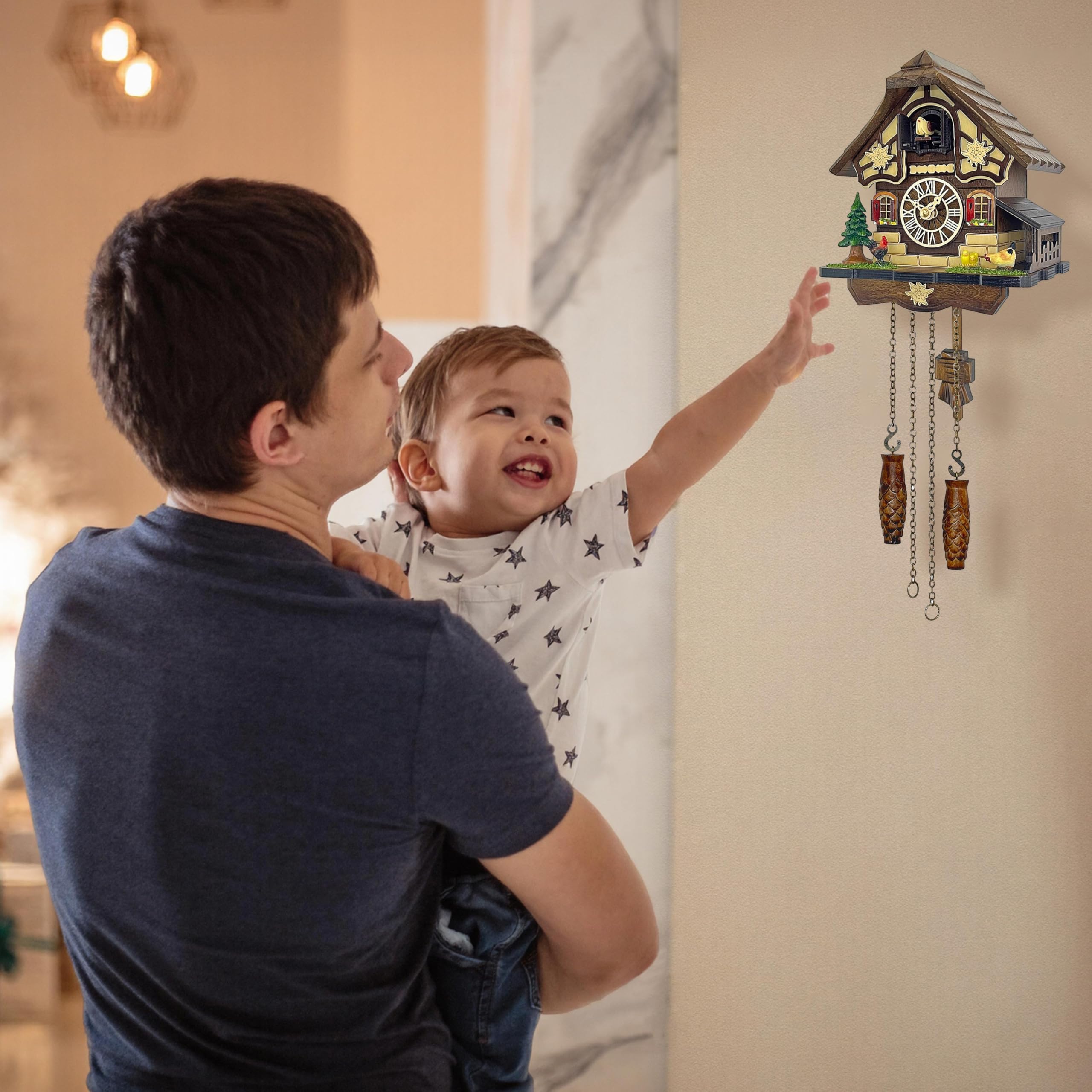 12 Melodies with Accurate Quartz Movement – On the hour, the clock plays one of 12 rotating melodies following a cheerful cuckoo call. Built with a high-quality quartz movement for reliable and precise timekeeping. The cuckoo sound and music can be controlled separately, allowing you to choose complete silence, cuckoo only without music, or cuckoo with music.