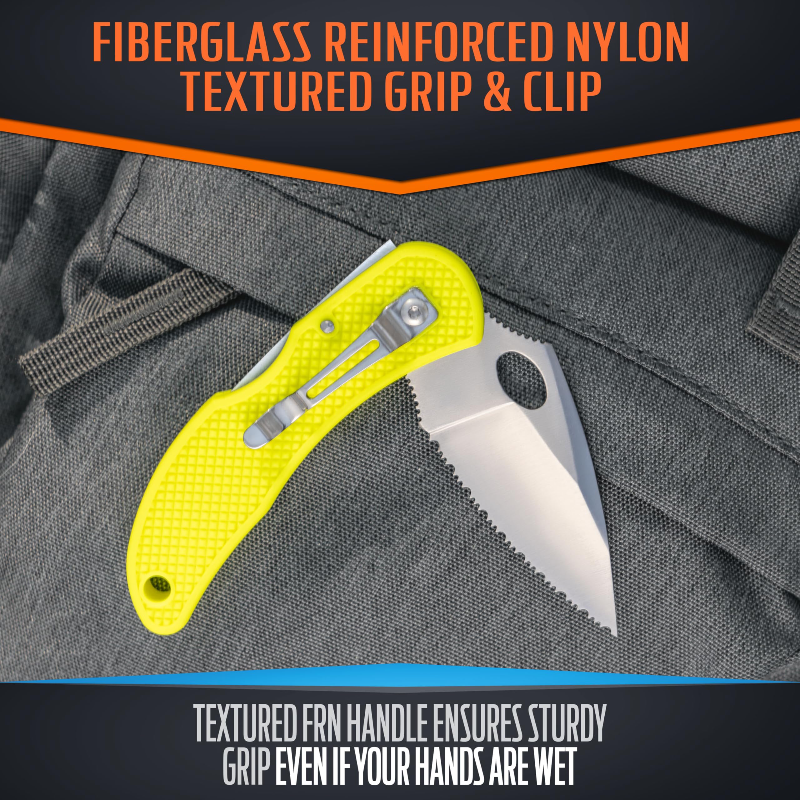 Convenient To Carry - This salt water folding knife comes with a reversible clip making it easy to attach to your left- or right-hand side. There's also a hole where you can attach a lanyard or key ring.