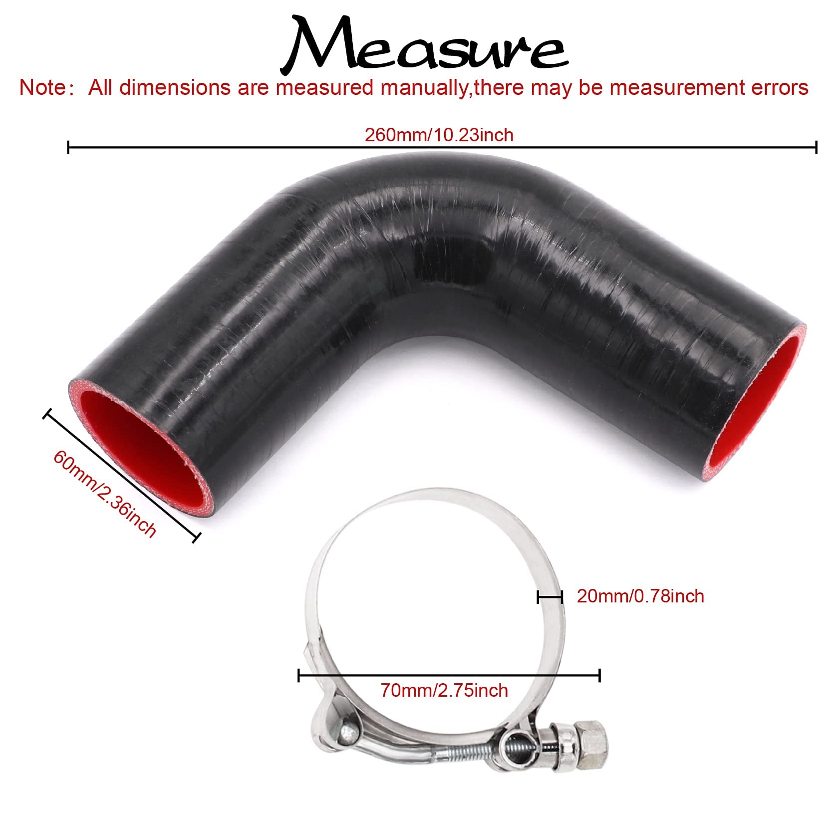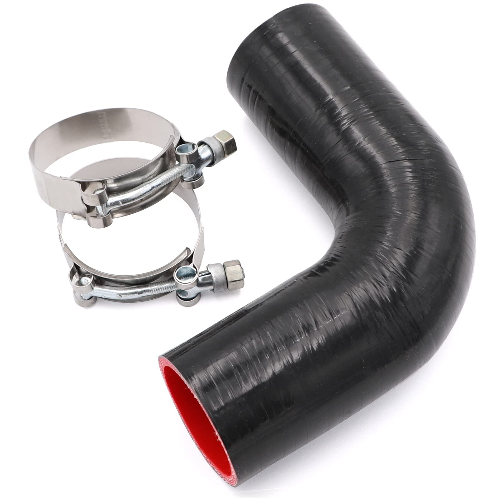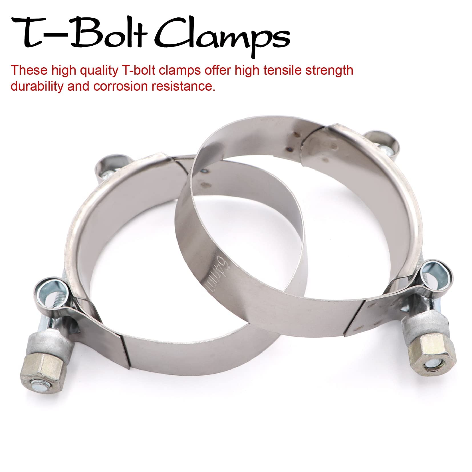 The silicone hose is made of high quality silicone, many sizes to choose with 2pcs Stainless Steel T-Bolt Clamp.
