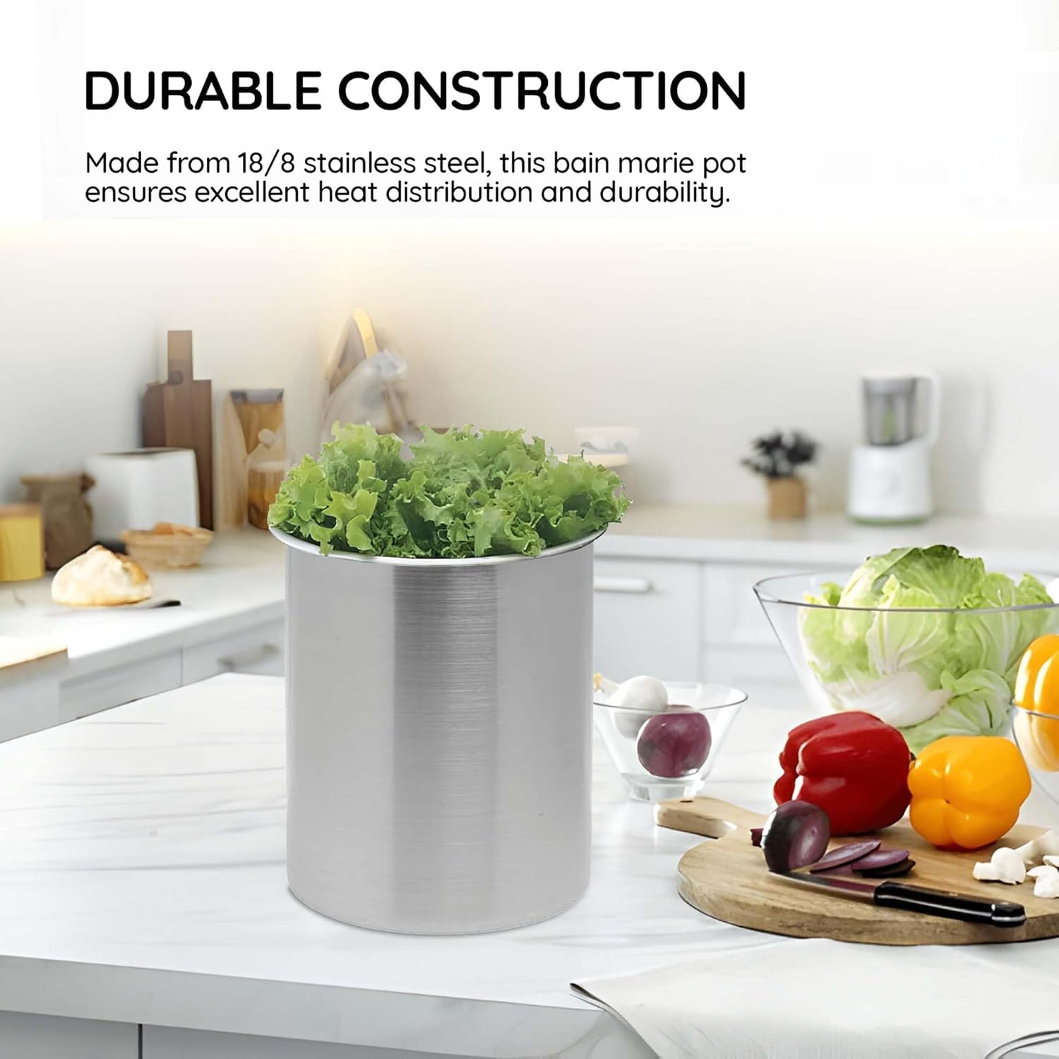 Maintains Freshness Throughout the Day: This bain marie pot is designed to keep your food fresh and at the ideal serving temperature all day long. Perfect for sauces, soups, and a variety of other dishes, ensuring your customers always receive the best quality.