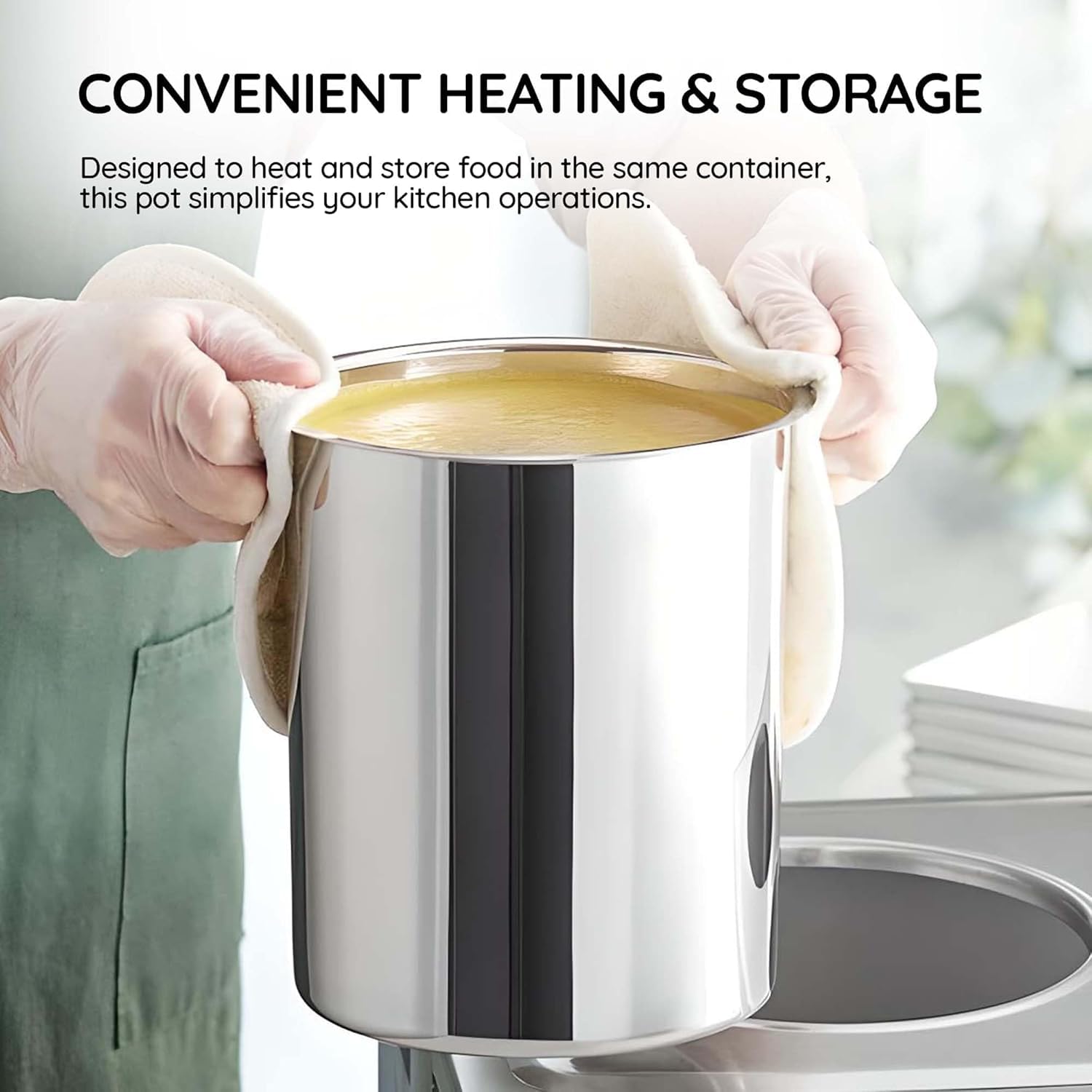Convenient Heating and Storage: Designed to heat and store food in the same container, this pot simplifies your kitchen operations. After use, allow the container to cool, seal it with saran wrap or a lid, and save time and energy during cleanup. Ideal for quick-service restaurants and efficient foodservice.