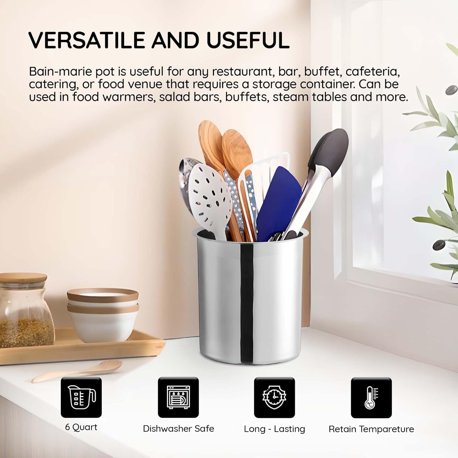 Versatile Use in Various Settings: Whether used alone or in combination with soup warmers, salad and buffet bars, or steam tables, this pot adapts to your needs. It is ideal for both hot and cold temperature retention, making it a versatile addition to any kitchen.