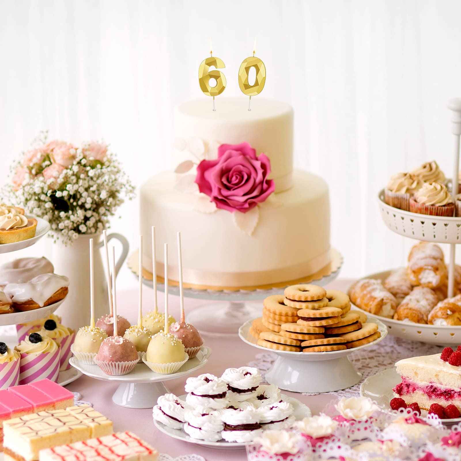 3D Diamond Effect Number Candle: the number 60 candles come in classic color and vivid 3D design, look pretty and eye-catching under lamplight and glow bright in dark light; You also can apply them as attractive cake topper decoration for embellishing your cake and cupcake, making your birthday party more happy and relaxed
