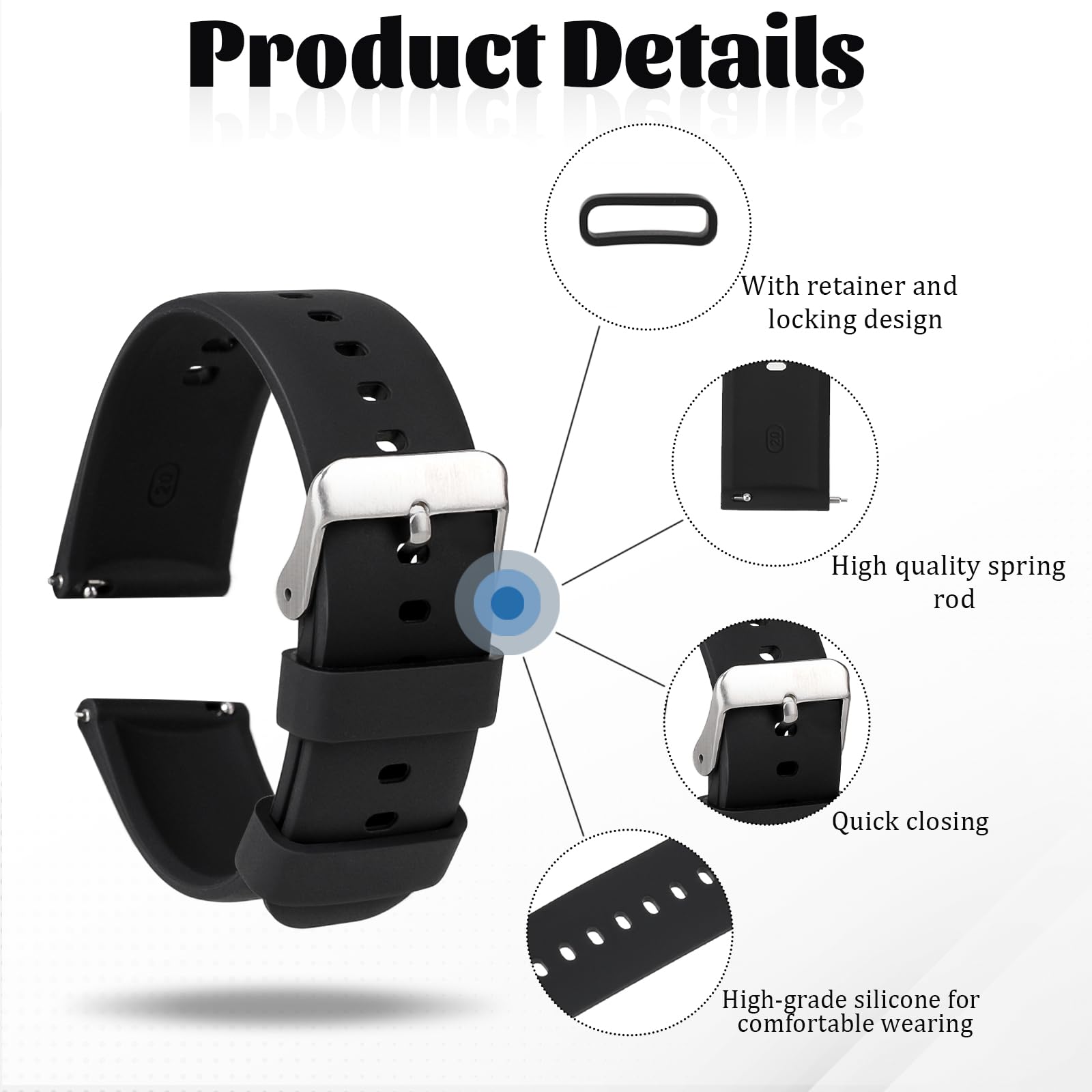 【Compatibility】These silicone watch band are compatible with any watch that uses a standard 20mm spring bar. Just measure the internal distance between the two lugs on the watch case to 20mm.